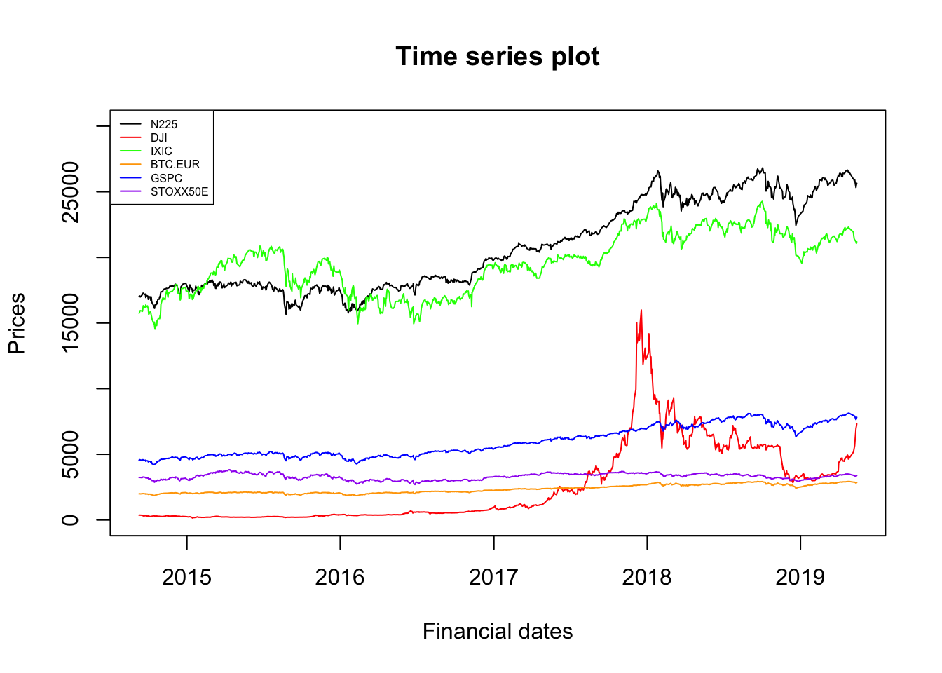 ## Date N225 DJI IXIC BTC.EUR GSPC STOXX50E