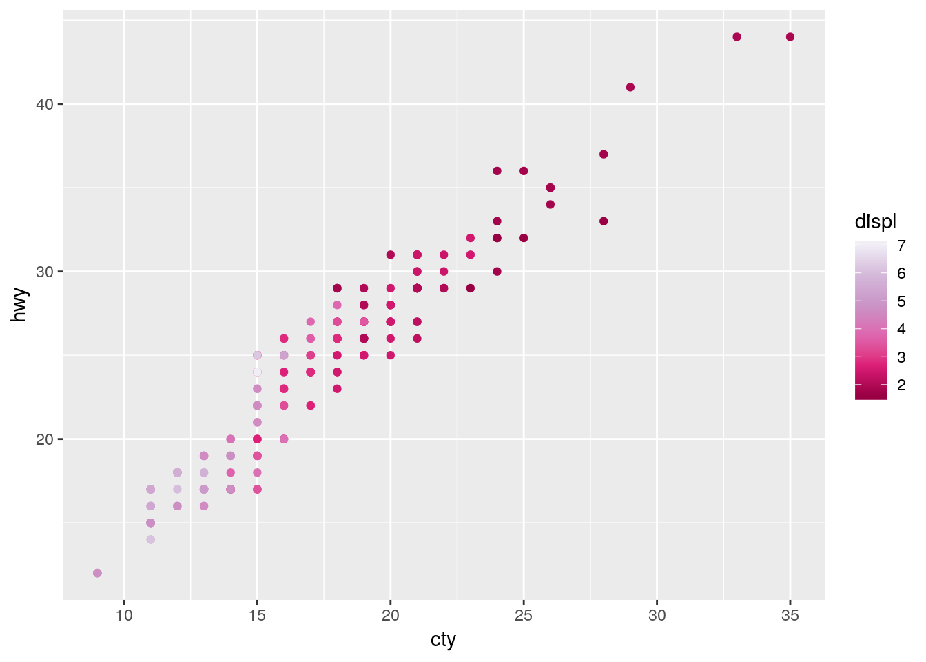 Moving away from color, we can also use other aesthetics to communicate a third variable. For instance: