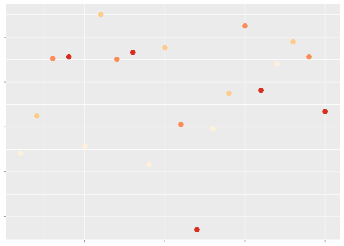 Position isn’t the only way to communicate which values are larger than others. For instance, if we want to show the level of a third variable, we can use color: