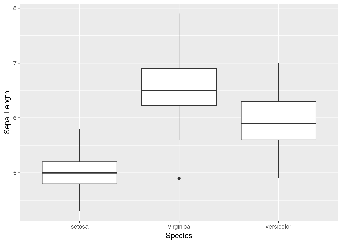 ggplot(iris, aes(Species, Sepal.Length)) +