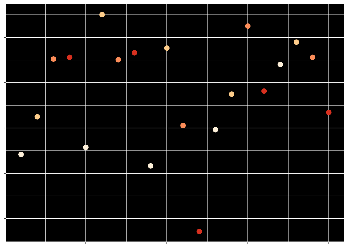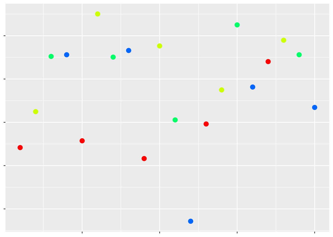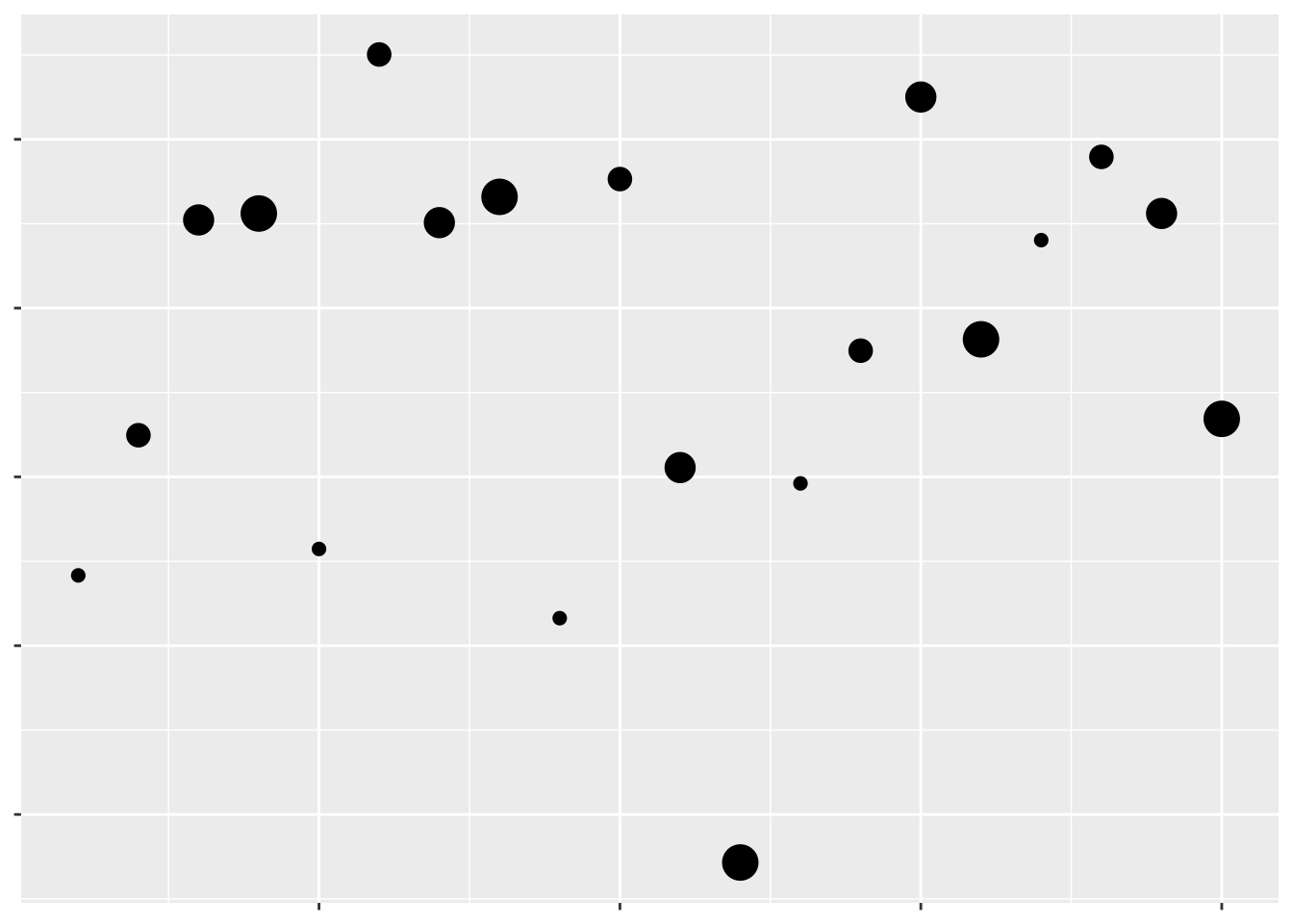 Even so, we can tell just from this scatterplot which points have larger values than others - they’re the ones further up and to the right. That’s because we’ve been trained to see position as an ordered aesthetic in graphs.