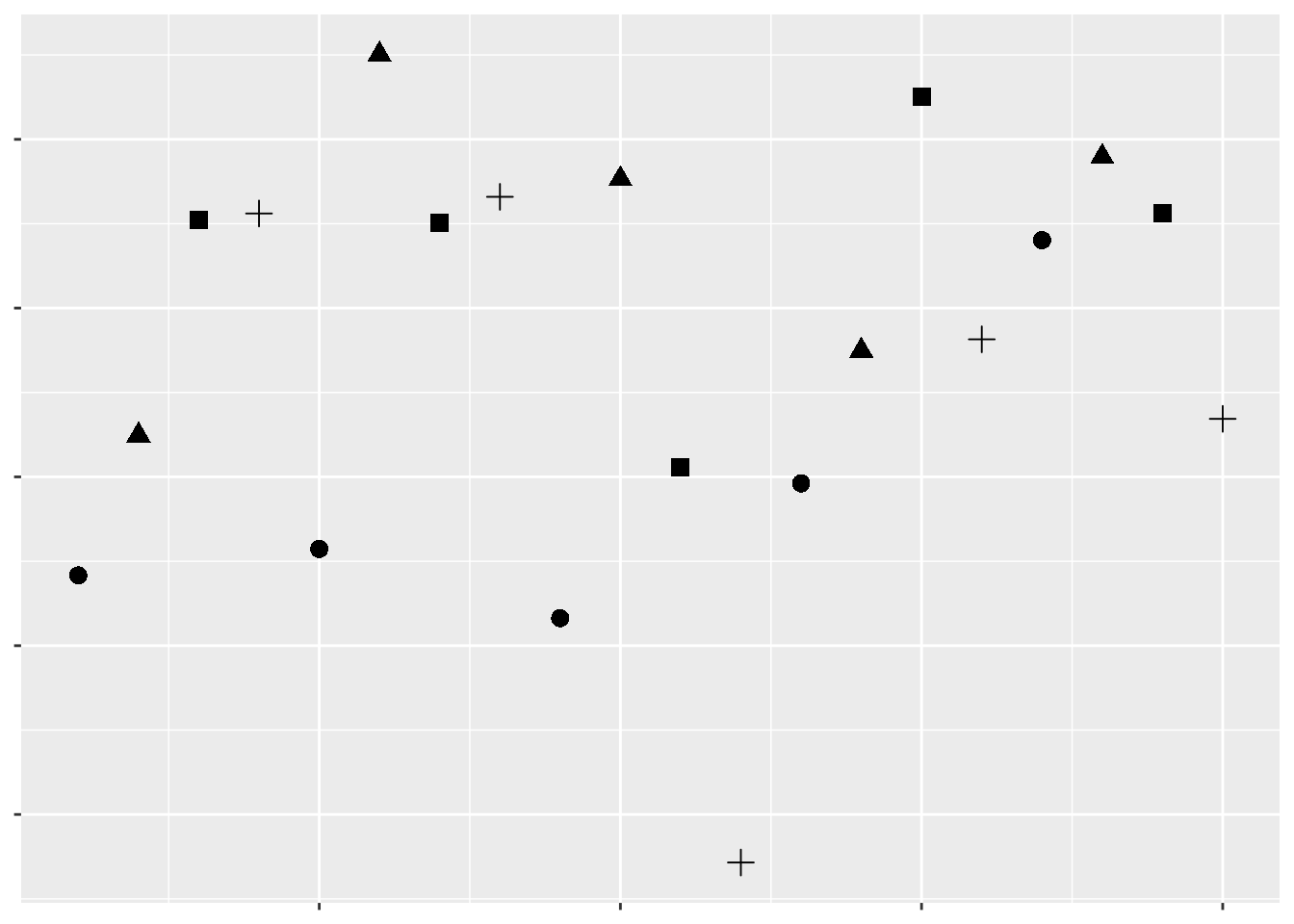 We have one last aesthetic that we can use to show our third variable - the shape of the points: