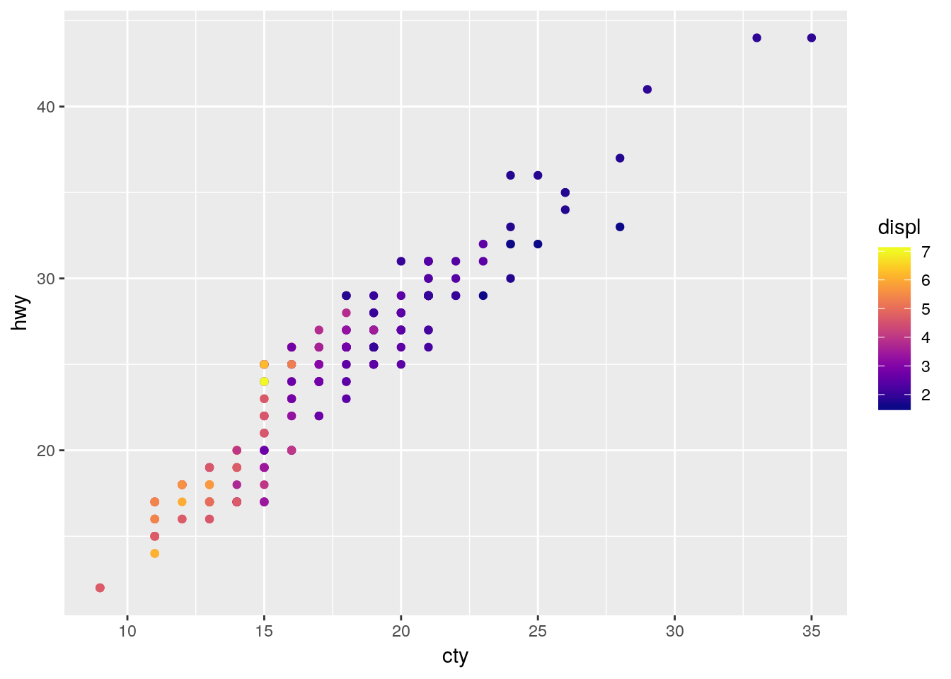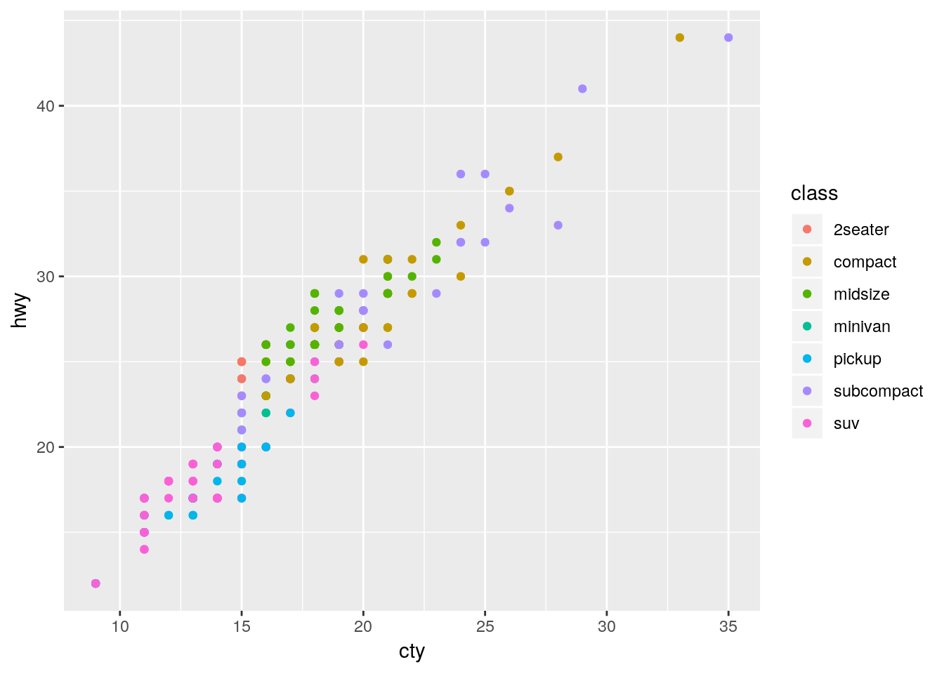 Moving away from color, we can also use other aesthetics to communicate a third variable. For instance: