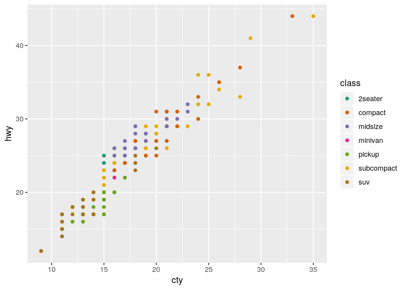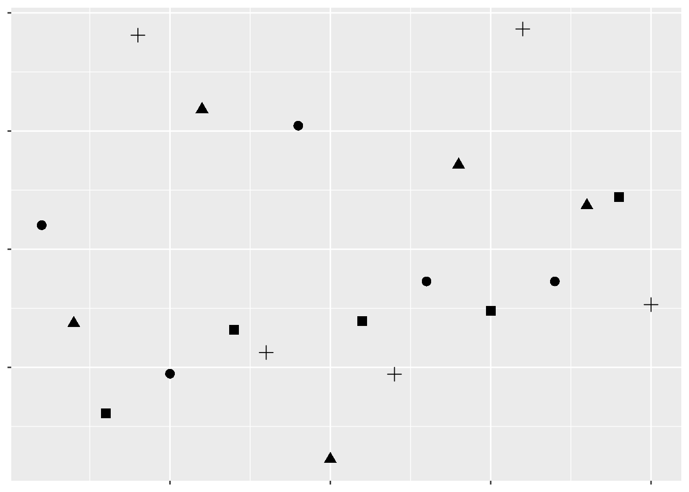 We have one last aesthetic that we can use to show our third variable - the shape of the points: