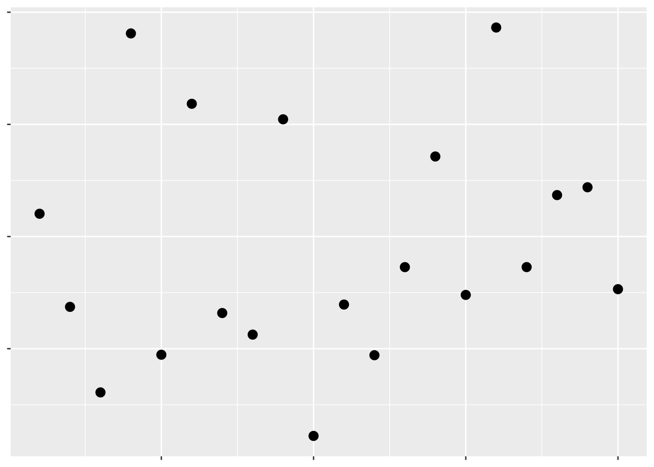 Hopefully we can already tell that this isn’t a great graph. The complete lack of text means we have no idea what data are being visualized, or what the takeaway message is supposed to be. Remember, graphs are for storytelling and demonstrating your point, not necessarily for giving exact values - you should include tables in your document if the exact values are important.