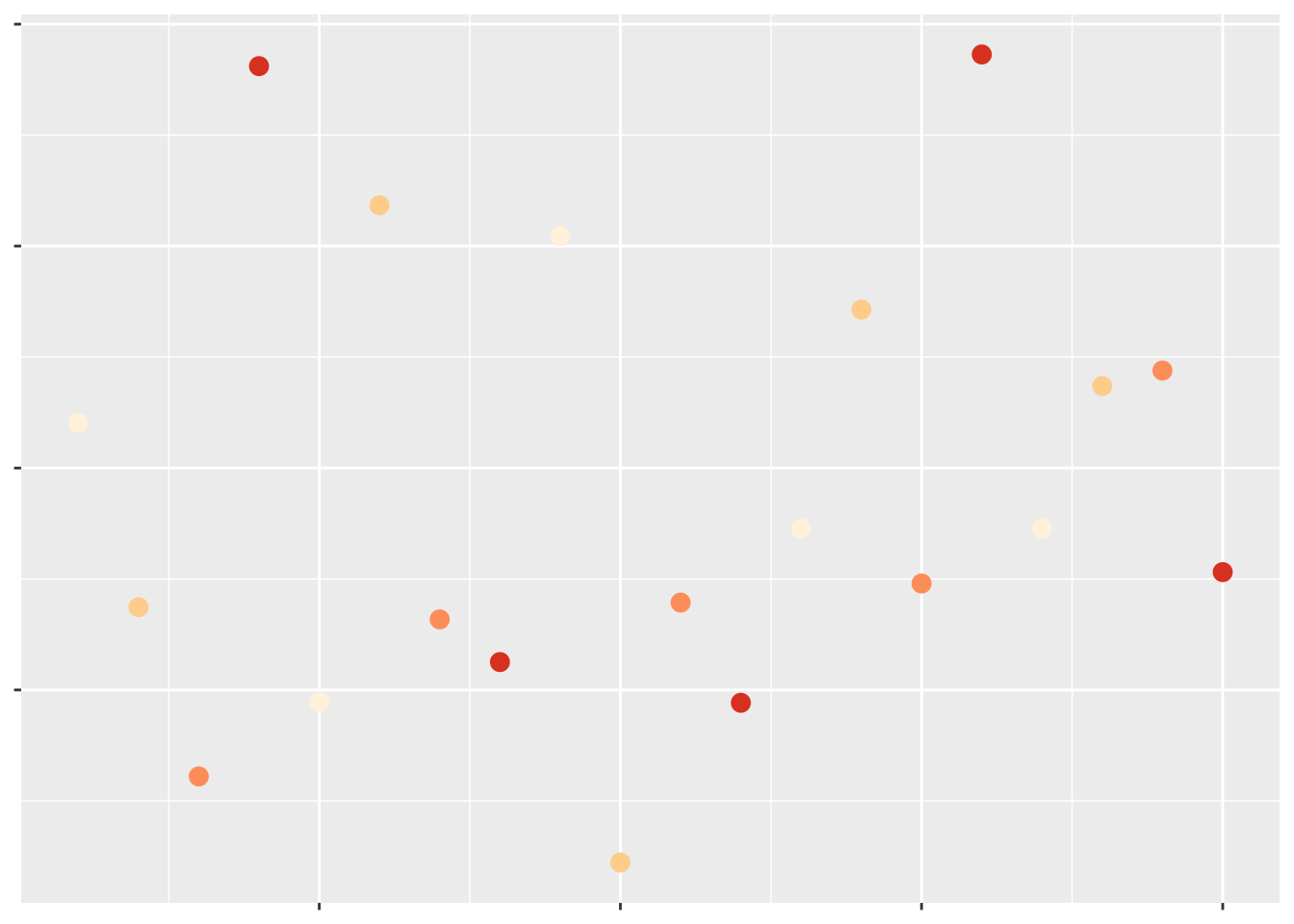 Position isn’t the only way to communicate which values are larger than others. For instance, if we want to show the level of a third variable, we can use color: