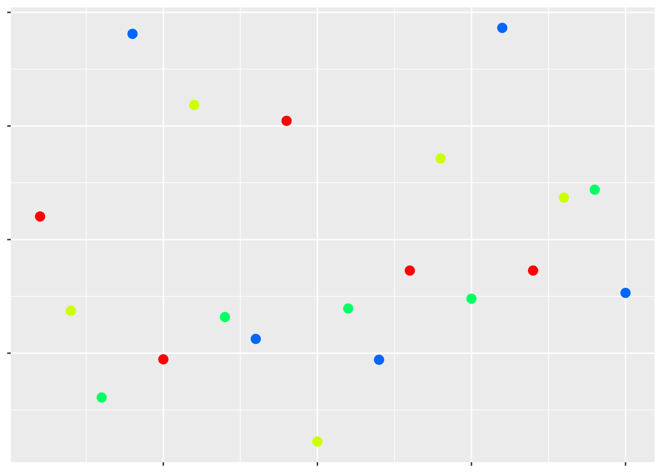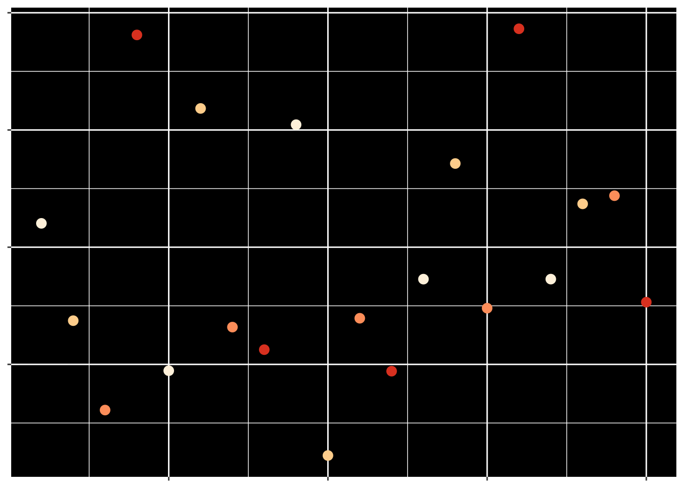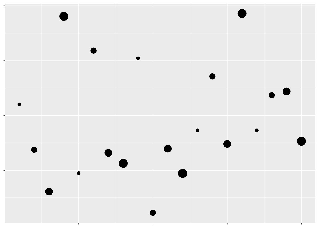 Even so, we can tell just from this scatterplot which points have larger values than others - they’re the ones further up and to the right. That’s because we’ve been trained to see position as an ordered aesthetic in graphs.