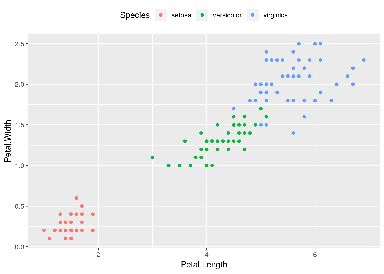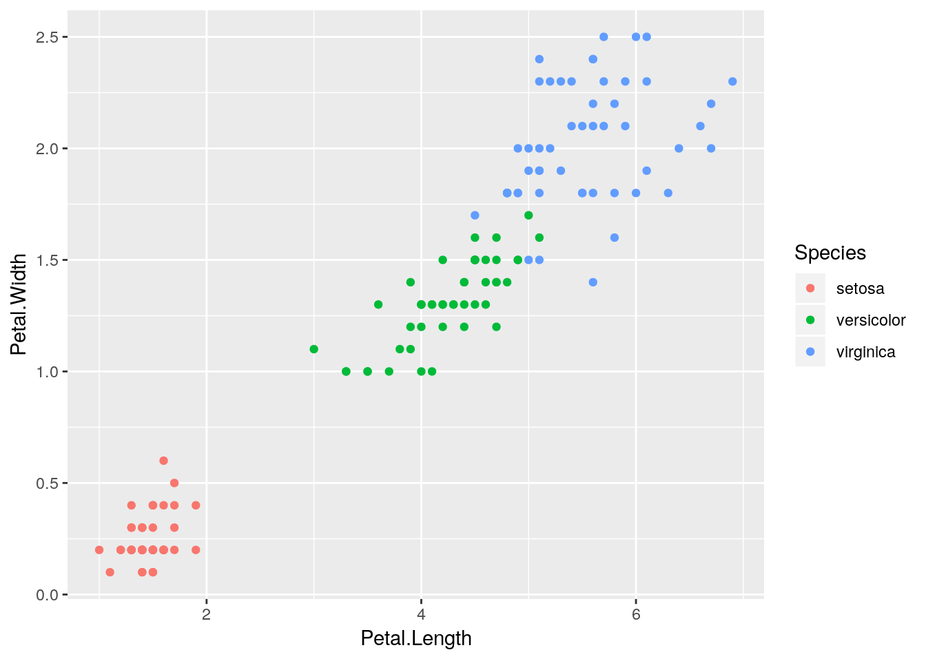 a <- geom_point(data = iris, aes(Petal.Length, Petal.Width, color = Species))