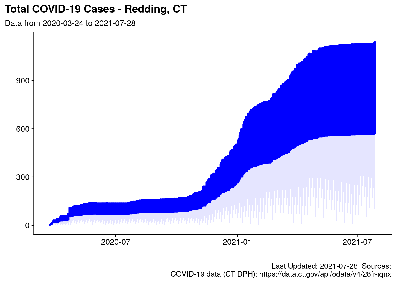 labs(title = "Total COVID-19 Cases - Redding, CT",