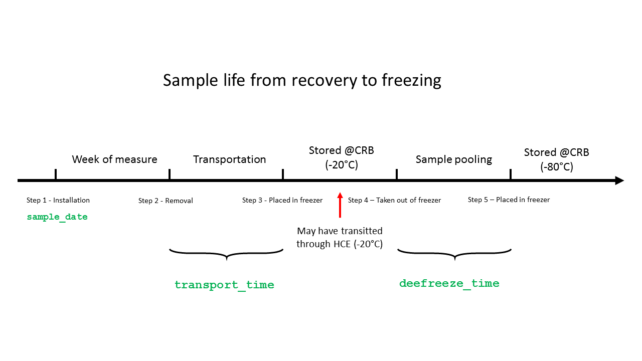 The second main step in our data pre-processing is to correct for protocol variables. Protocol variables are parameters that may influence compound level between sample collection and final concentration The most common example is the measurement batch. The correction method we use is described in (Mortamais et al. 2012) where a multiple linear regression4 is performed for each compound, between the compound level, the protocol variables and adjusted for confounders. And then the relevant model \(\beta\)s are substracted from the measured concentration