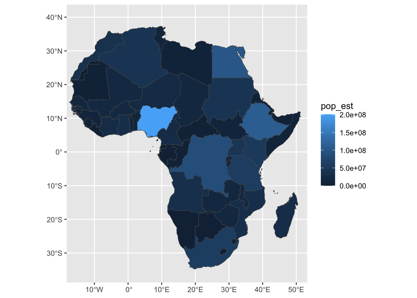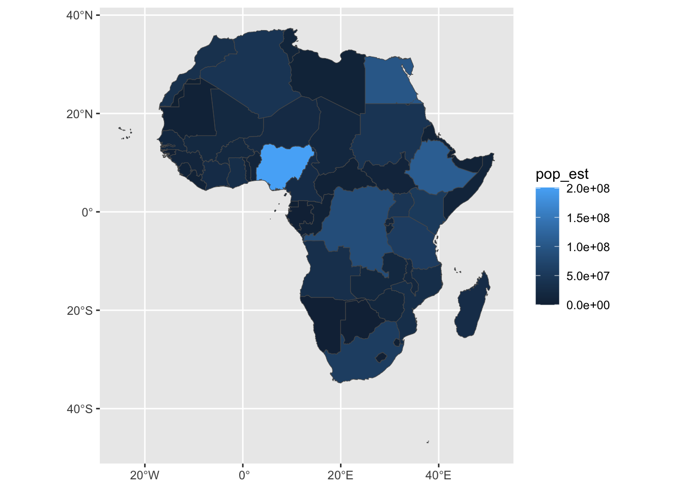 africa <- ne_countries(scale = 10, continent = "africa", returnclass = "sf")