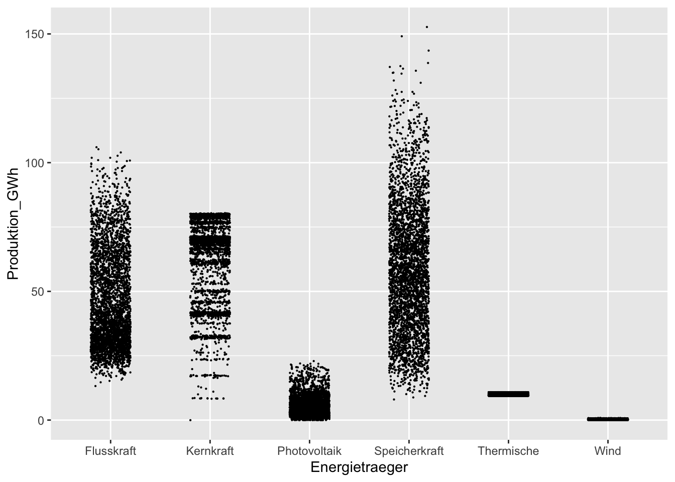 ggplot(aes(x = Energietraeger, y = Produktion_GWh)) + ## Aesthetics