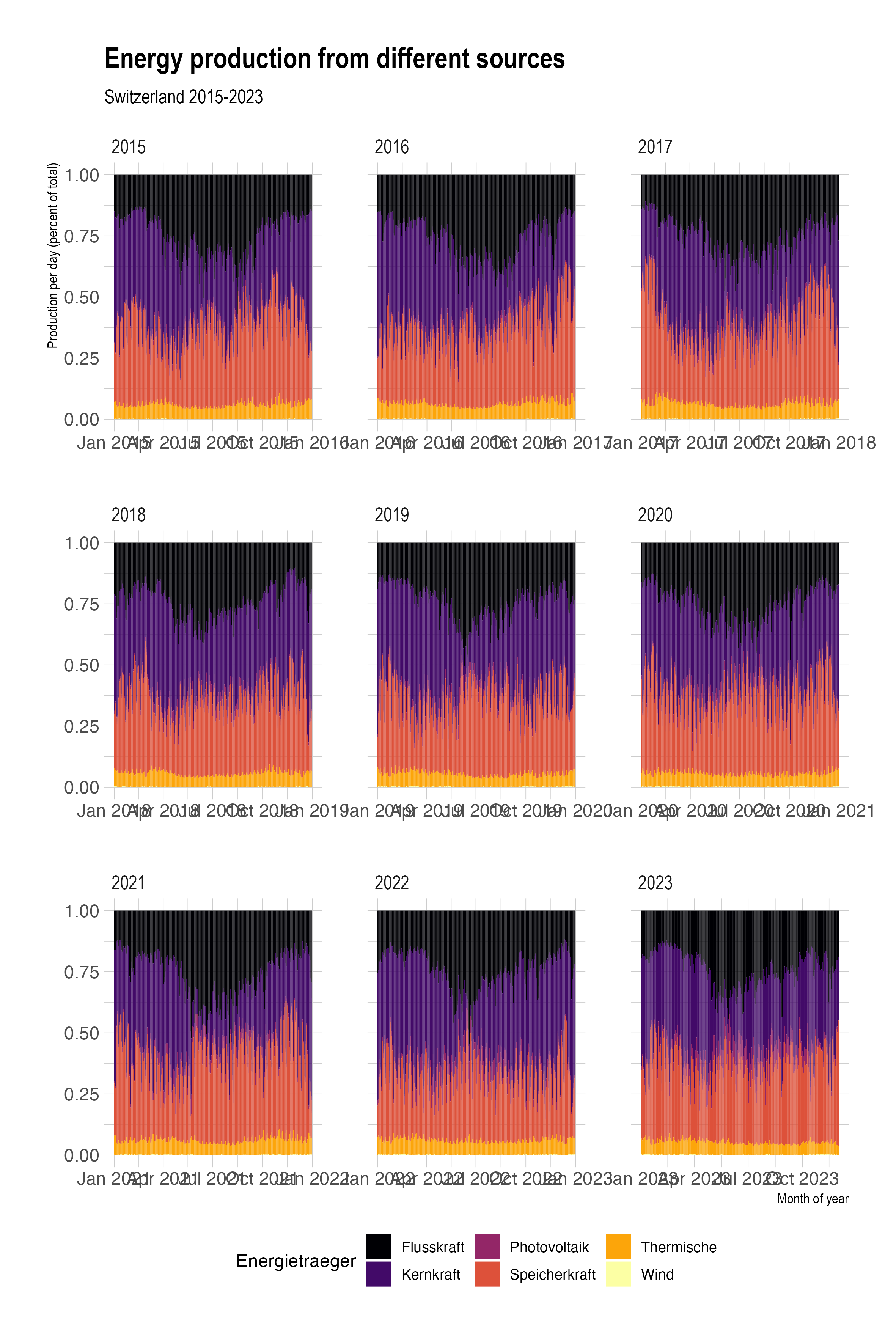 For our first examples, we’ll use a dataset on Swiss energy production from different sources.