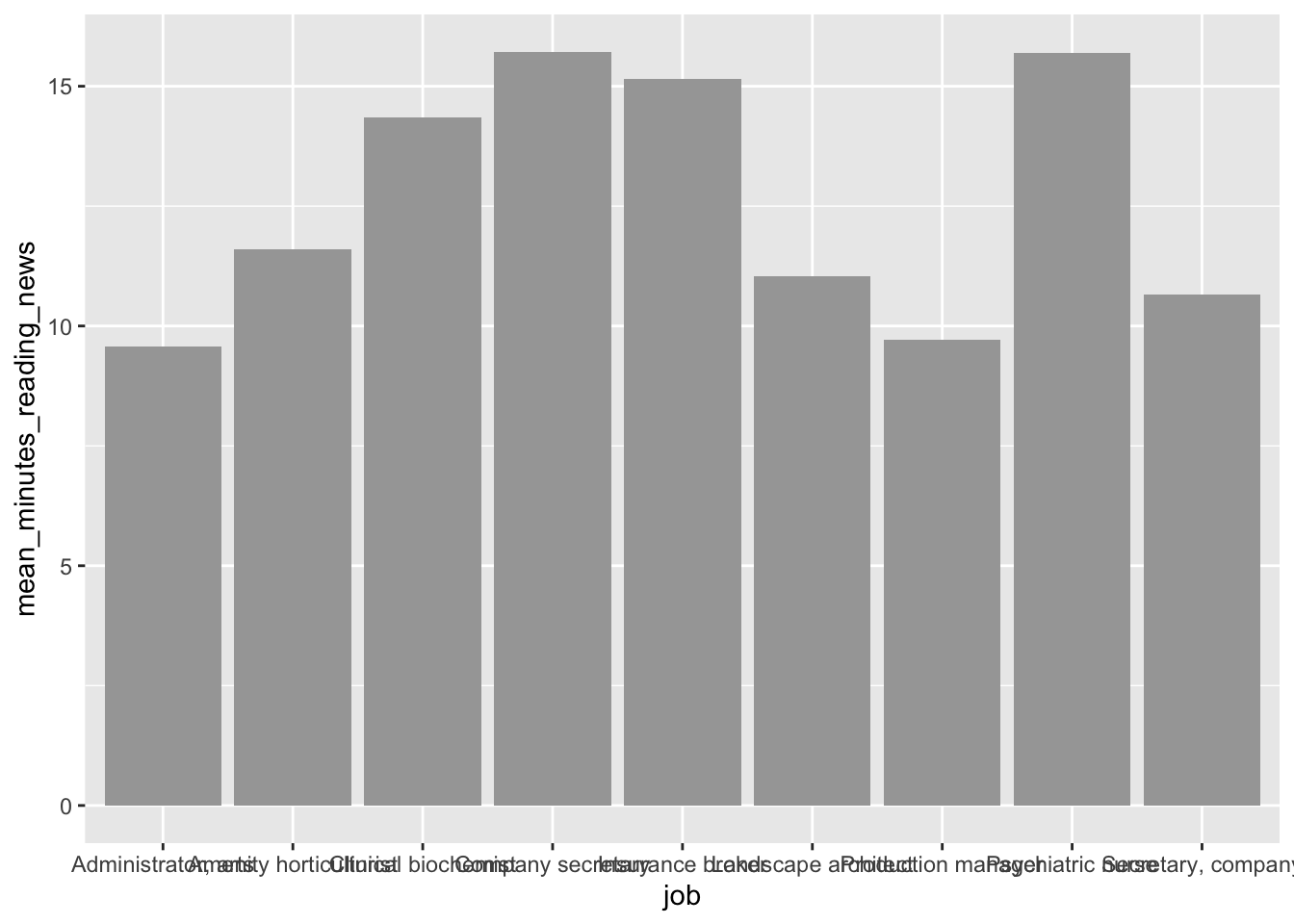 geom_col(aes(x = job, y = mean_minutes_reading_news))