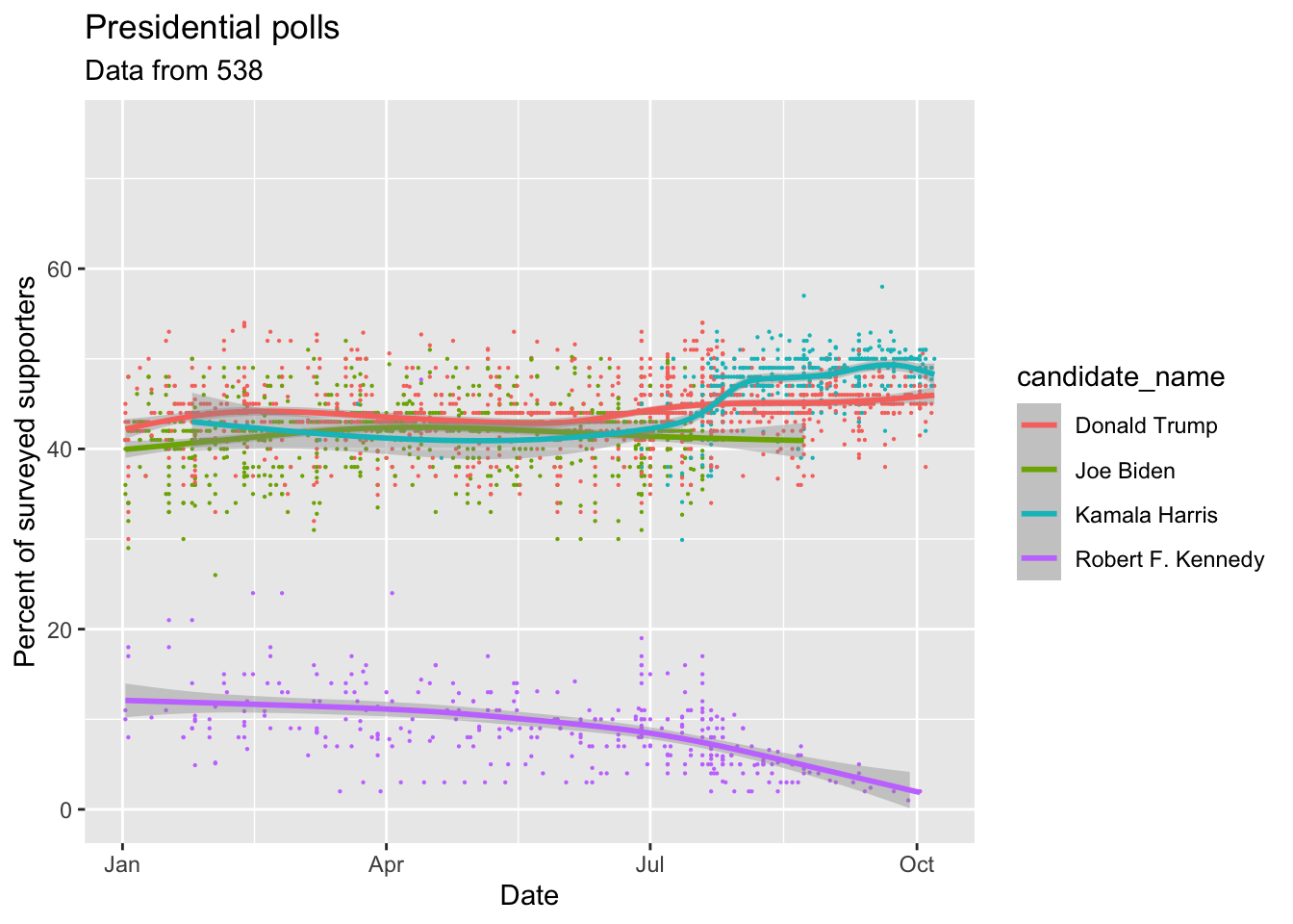 filter(candidate_name %in% c("Kamala Harris", "Donald Trump", "Robert F. Kennedy", "Joe Biden")) |>