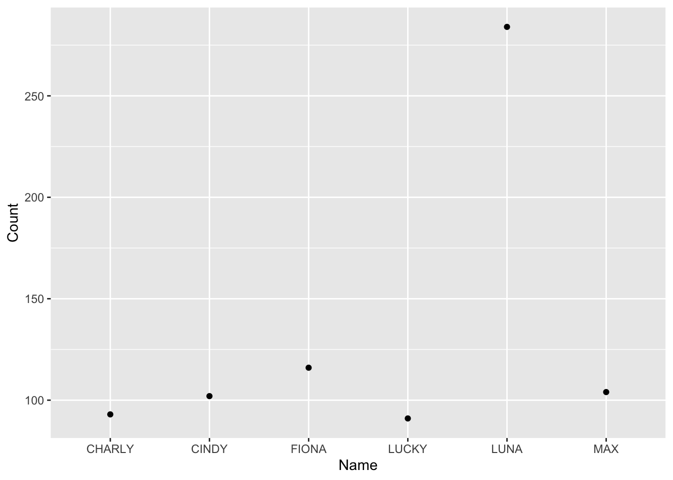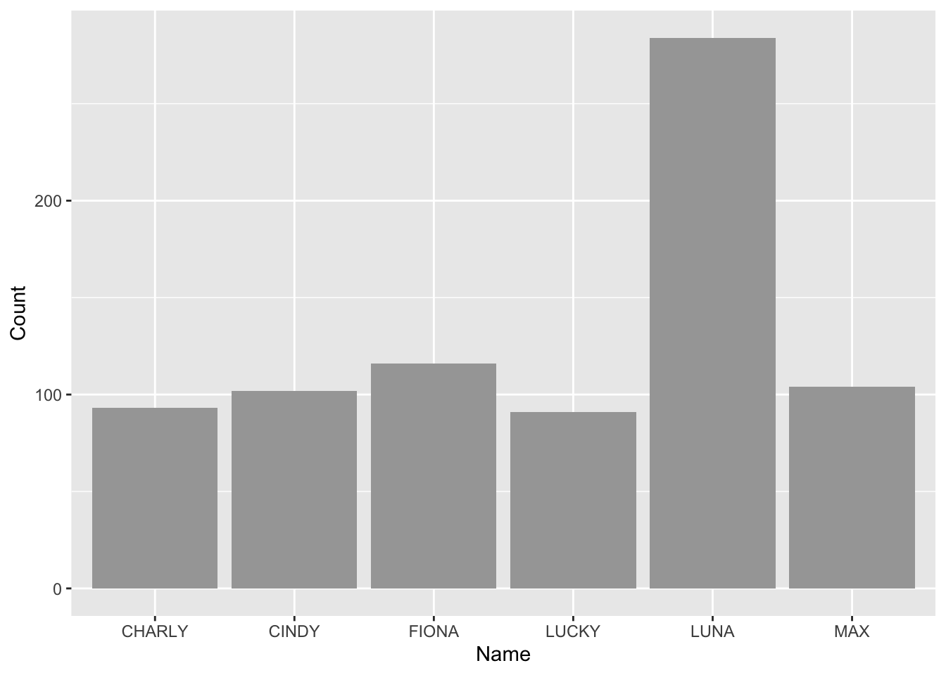Let’s say we wanted to find out the most common name for a horse with a German-speaking owner. Having looked at our data’s head, we can see that the column OwnerLanguage will tell us this information. To keep only the German data, we could use a filter like this: