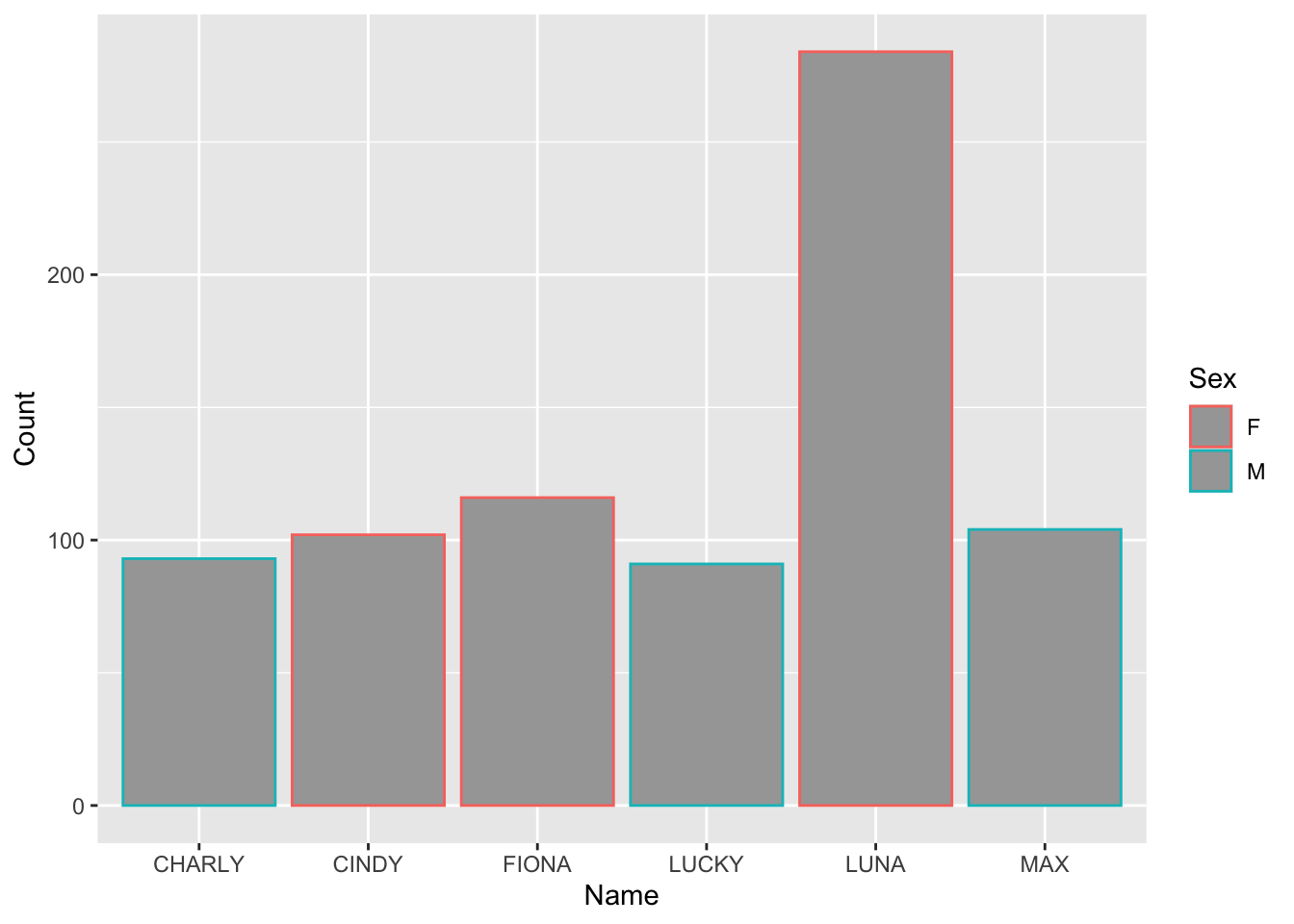 ggplot(aes(x = Name, y= Count, fill=Sex)) +