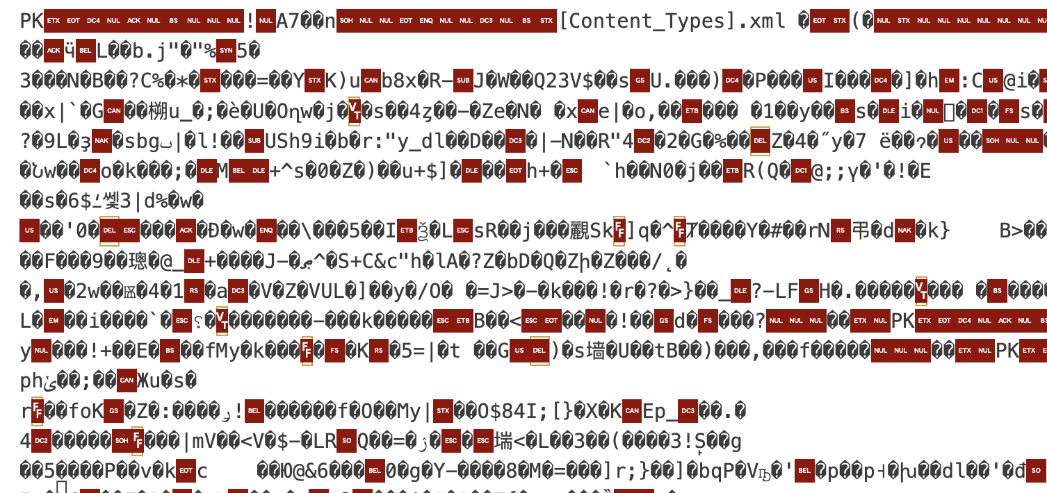 )Normally, I am a big advocate for looking at the plain text of files before you import them, but XLSX files are a little different. They’re actually a zip file, with a bunch of XML files inside. If you try to open them in a text editor, you’ll just see a bunch of gibberish.