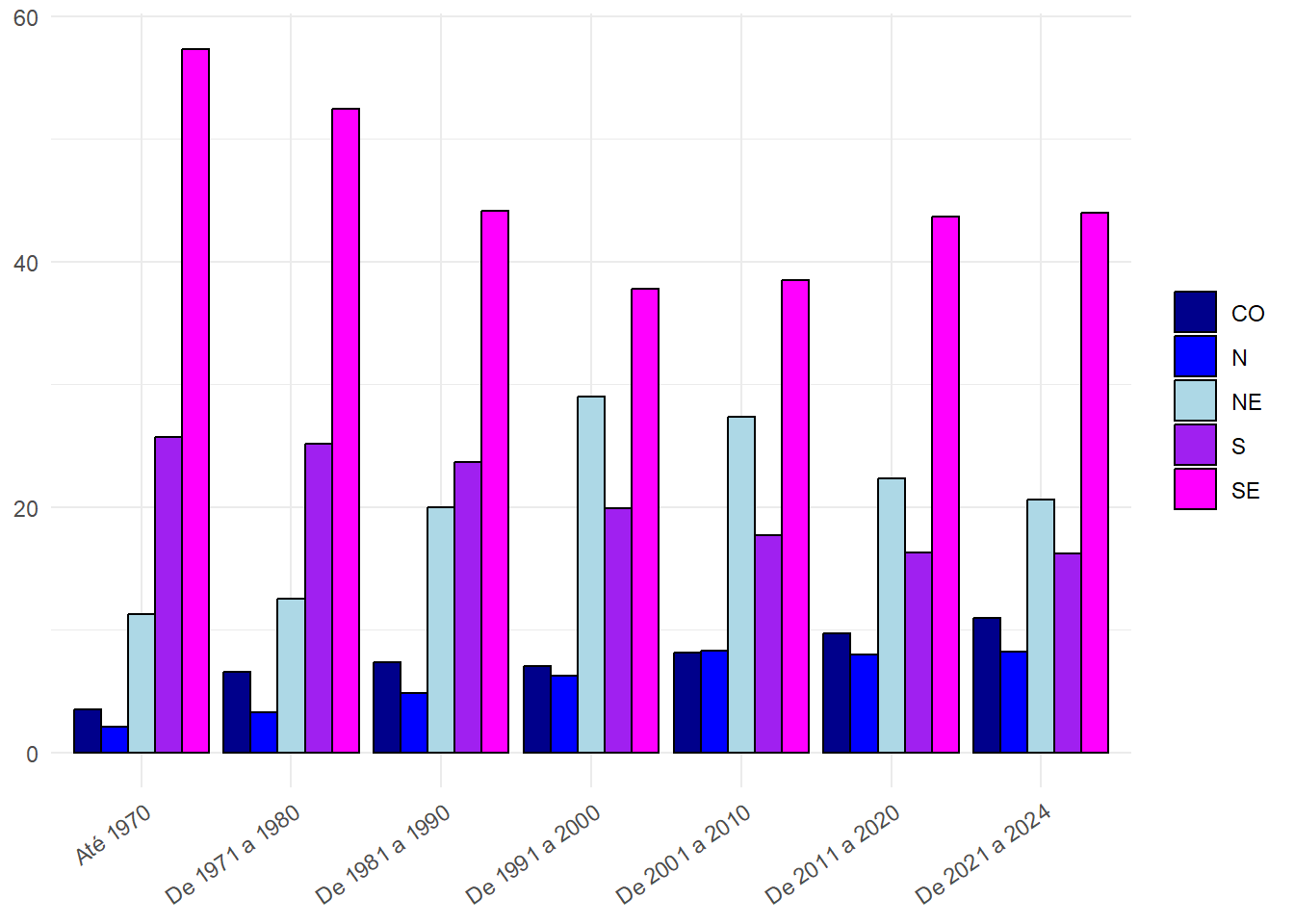 NE 1.389 11,3 5.018 12,5 16.676 20,0 50.574 29,0 75.162 27,3 60.623 22,3 22386 20,6
