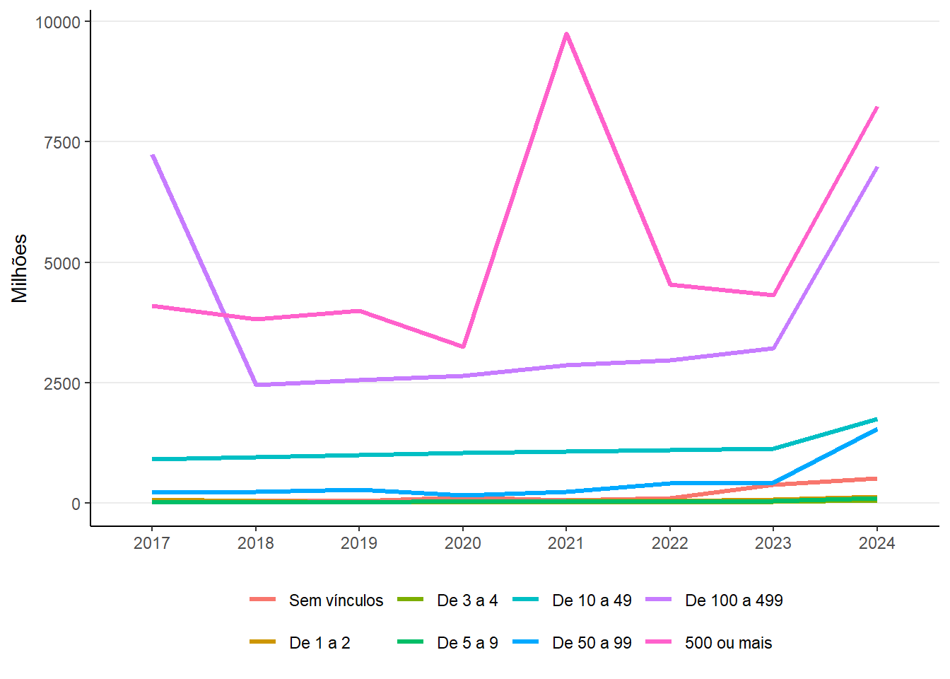 | 500 ou mais | 4.093 | 3.815 | 3.997 | 3.244 | 9.745 | 4.534 | 4.317 | 8.236 |