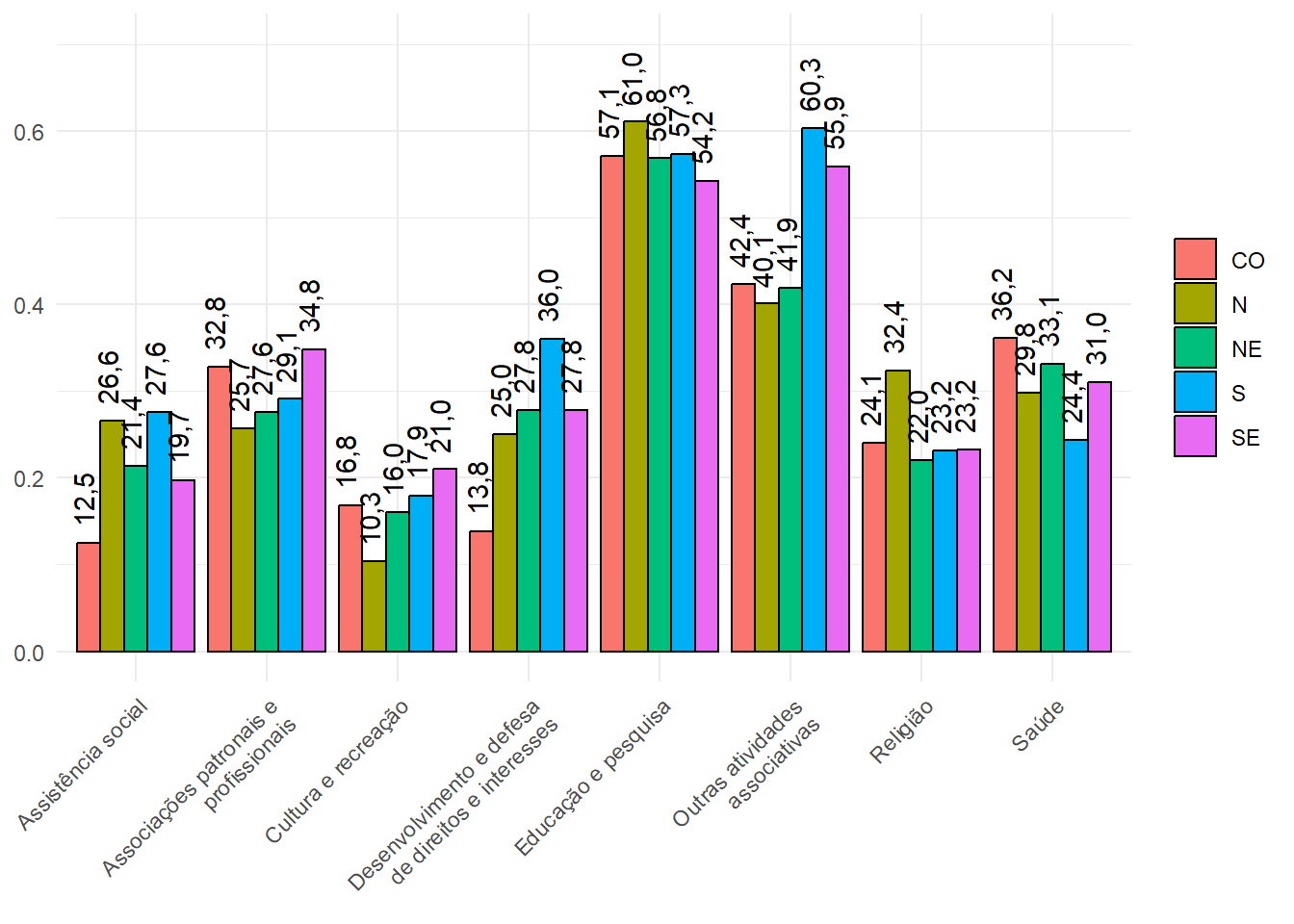 | Outras atividades associativas | 134.156 | 5,0 | 163.157 | 6,1 | 297.313 | 11,0 |