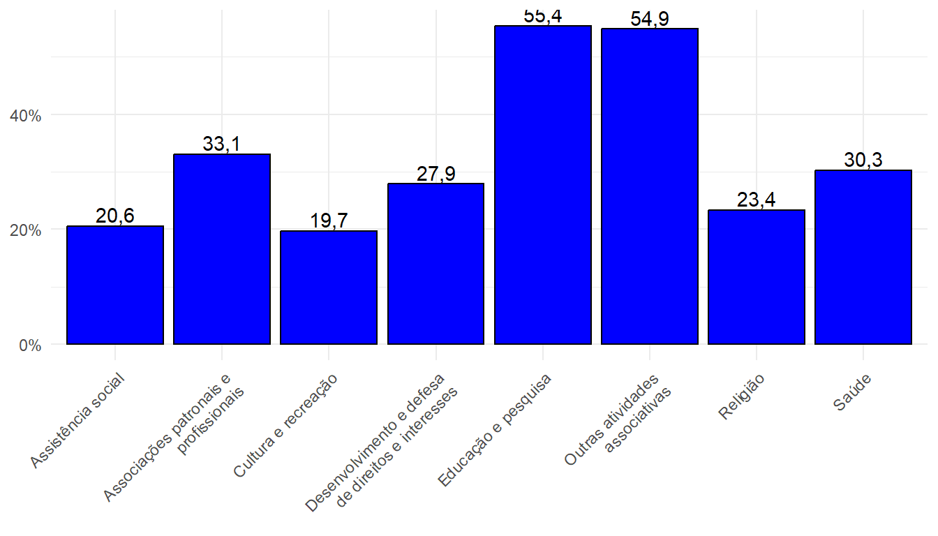 | Outras atividades associativas | 25.185 | 0,9 | 38.271 | 1,4 | 84.962 | 3,2 | 107.590 | 4,0 |