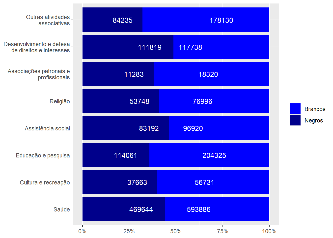 | Outras organizações da sociedade civil | 119.965 | 68,7 | 54.553 | 31,3 | 174.518 | 100,0 |