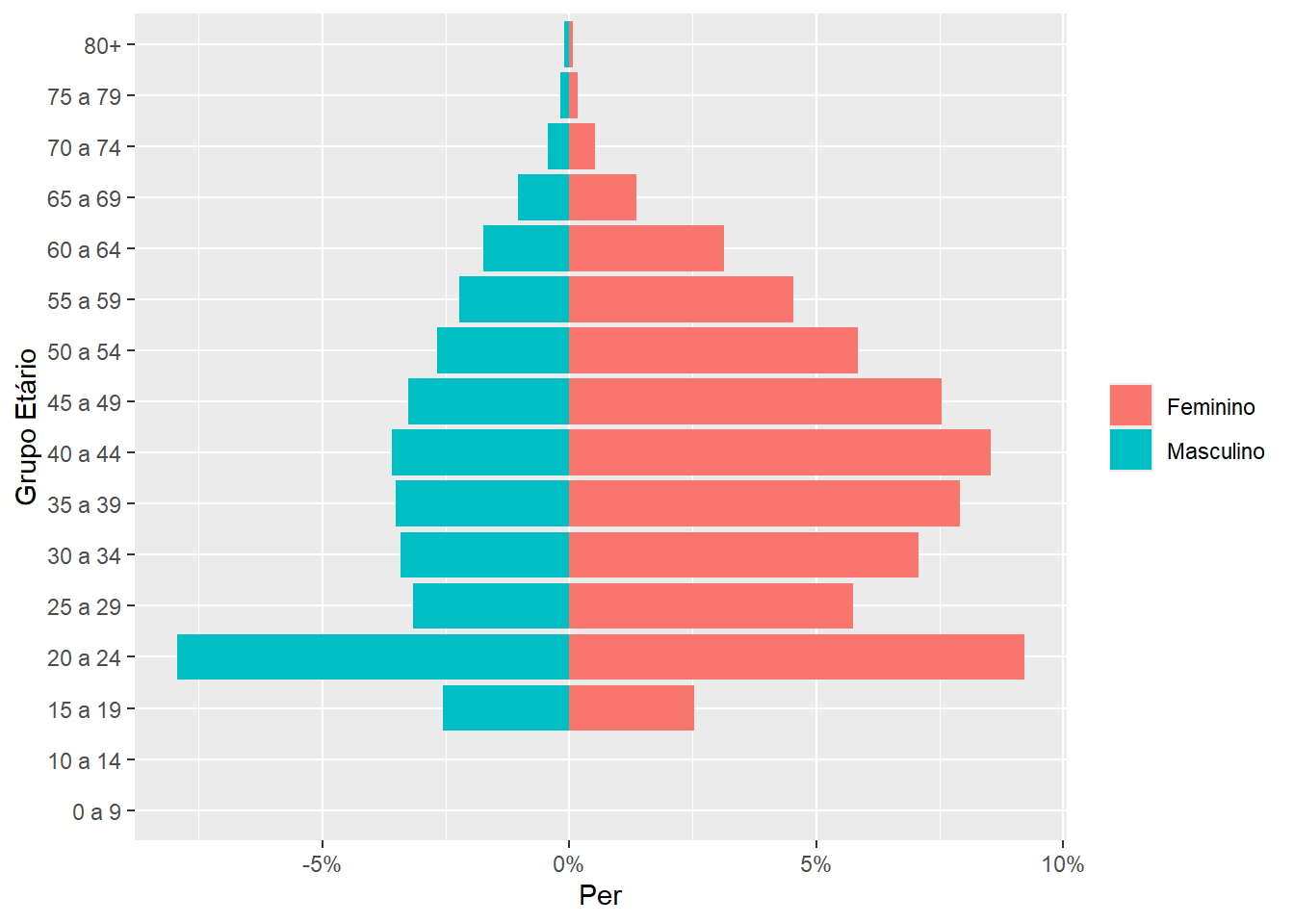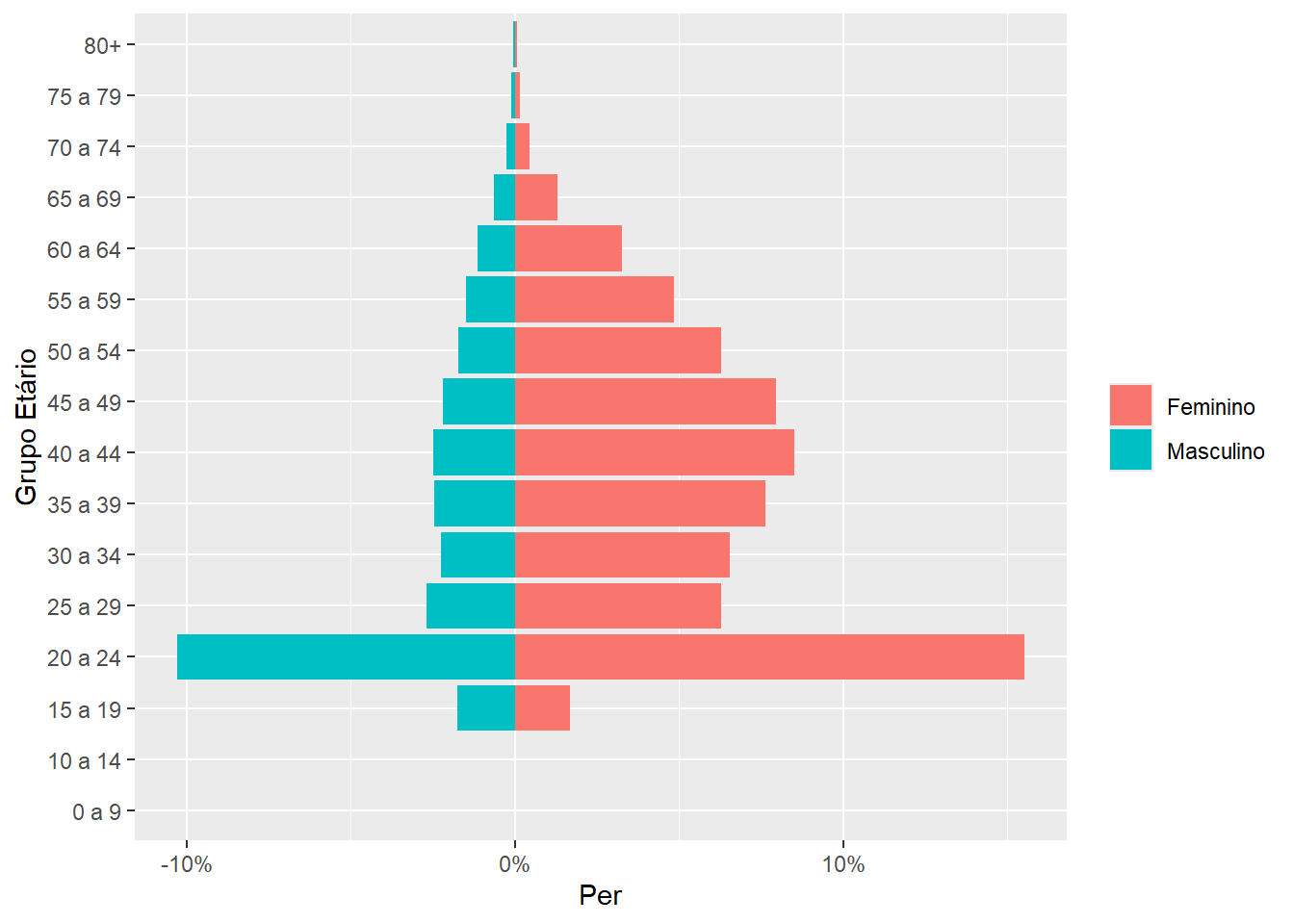 | Ensino superior | 17.752 | 90,3 | 1.916 | 9,7 | 19.668 | 100,0 |