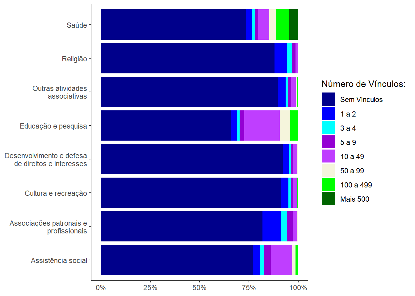 | Outras organizações da sociedade civil | 2.235 | 2,4 | 429 | 0,5 | 521 | 0,6 | 150 | 0,2 | 94.604 | 100,0 |