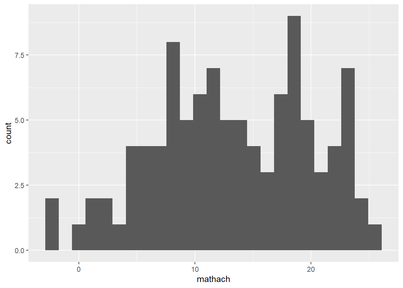 #or ggplot(data = hsb, mapping = aes(mathach)) +