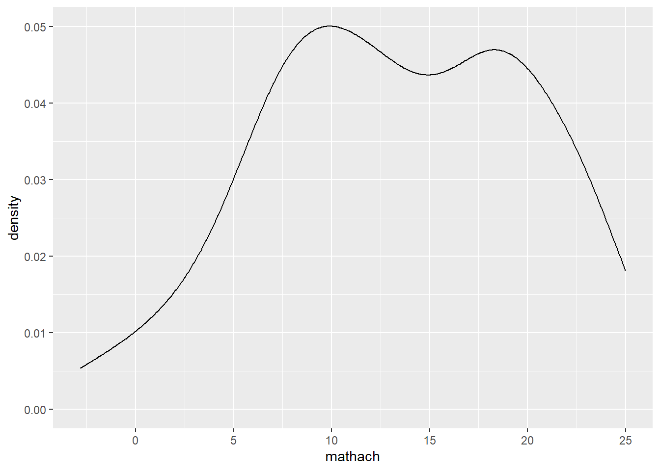 # or ggplot(data = hsb, mapping = aes(mathach)) +