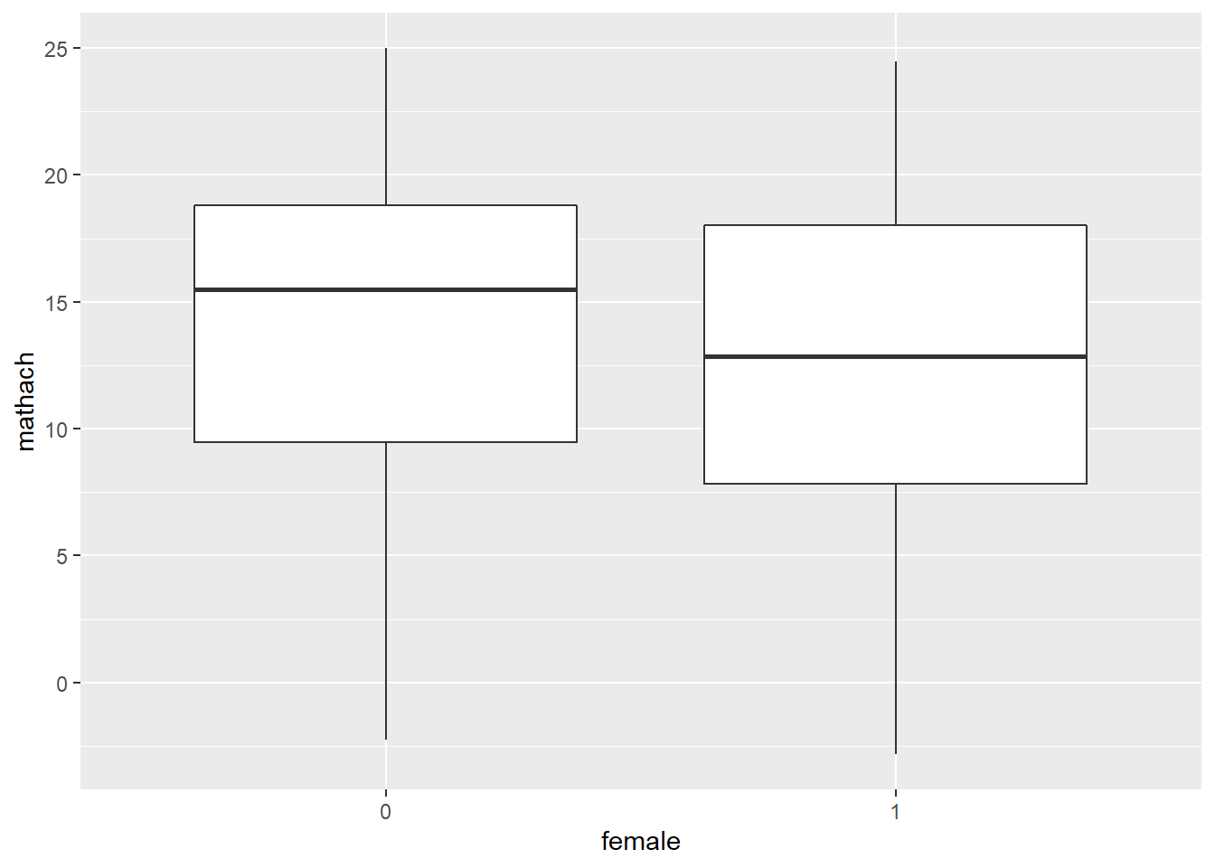 ggplot(data = hsb, mapping = aes(female, mathach)) +