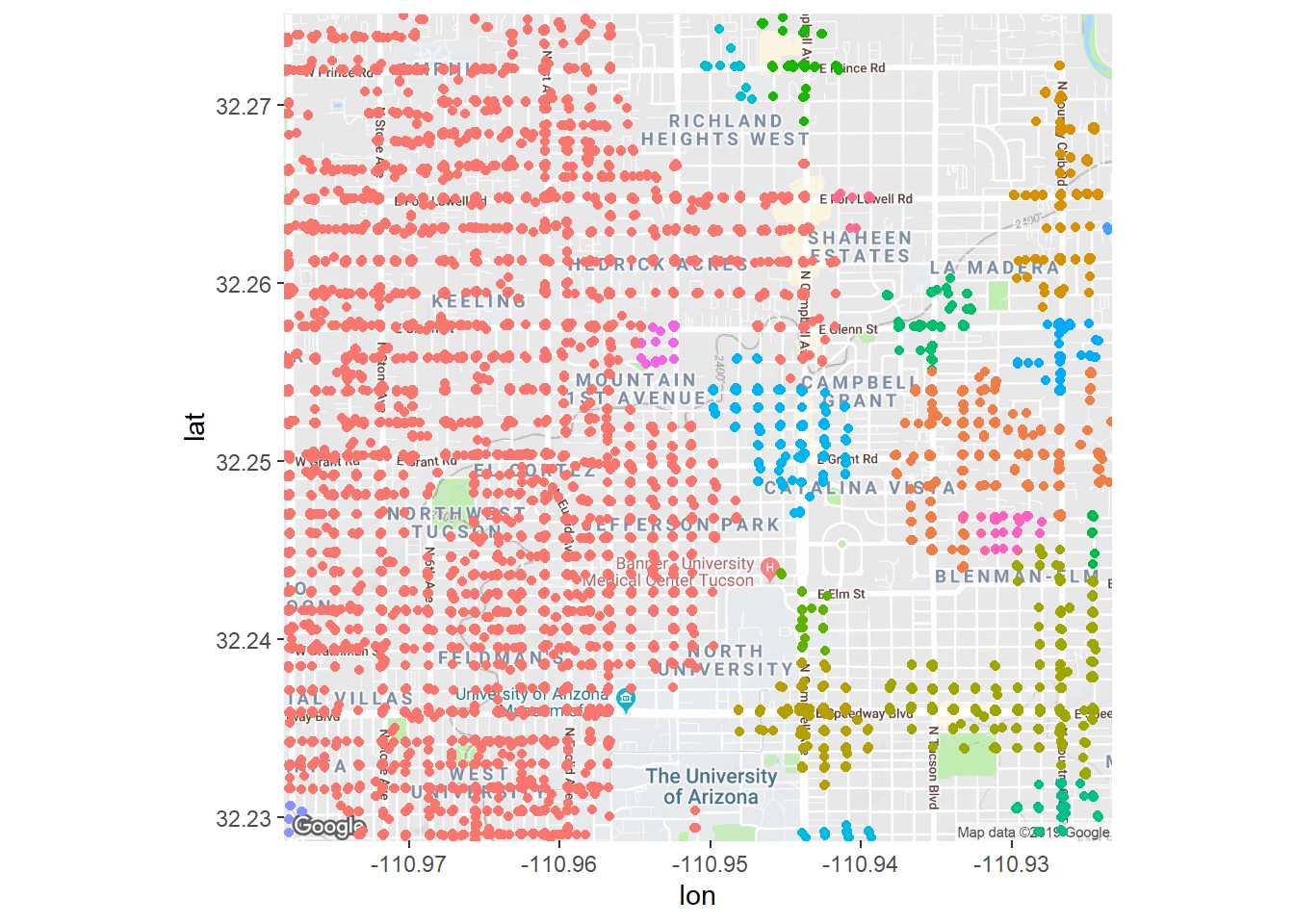 14.5 Using DBSCAN to identify hotspots in Tucson crime.