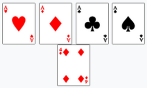 Number of possible four-of-a-kind hands: |E| = 13*48 = 624
