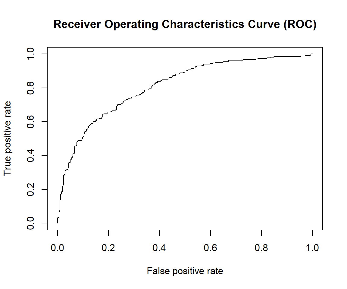 plot(perf, main="Receiver Operating Characteristics Curve (ROC)")