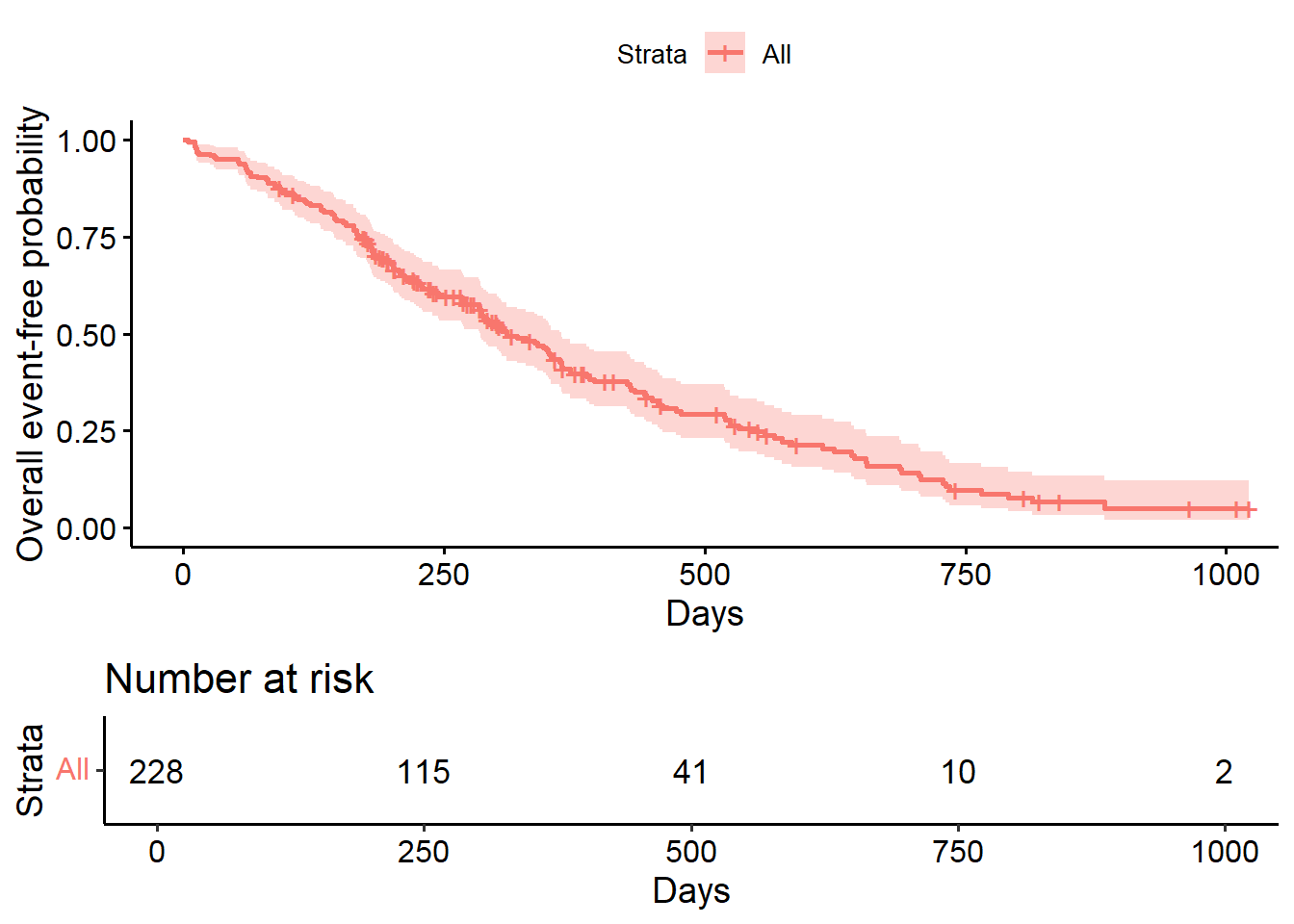 - Package for nice visualization and more: “survminer” (Kassambara, Kosinski, and Biecek 2024)