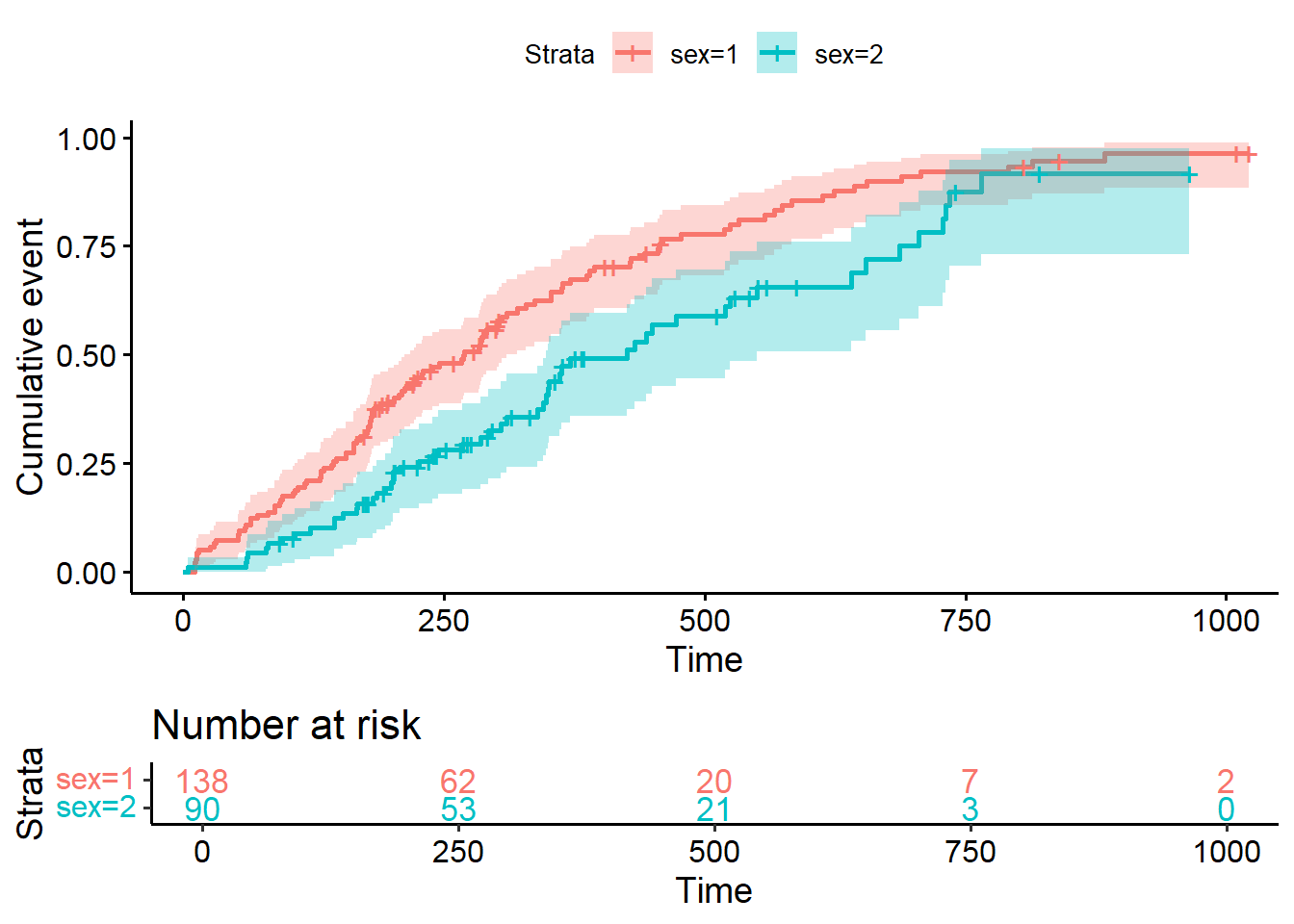 - Surv(time, endpoint==‘death’): right censored data, where the status variable is a character or factor