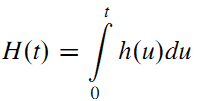 - The cumulative hazard function is defined as the area under the hazard function up to time t: