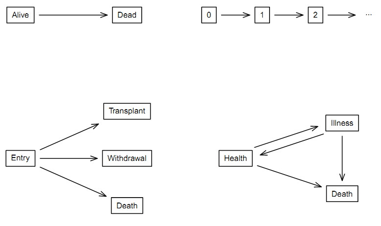 - Examples: time from treatment to seizure episodes (multiple repeated seizure episodes may occur); infections in transplanted patients