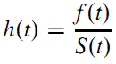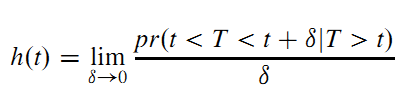 The hazard function is the instantaneous failure rate: the probability that, given that a subject has survived up to time t, he or she fails in the next small interval of time, divided by the length of that interval (Moore 2016):