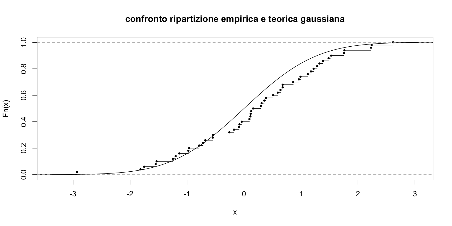 La funzione di ripartizione empirica è stata già introdotta nel precedente capitolo. Uno strumento immediato per confrontare la distribuzione dei dati osservata si ottiene sovrapponendo alla funzione di ripartizione empirica dei dati la funzione di ripartizione della variabile che si vuole confrontare. Tale funzione di ripartizione deve quindi essere completamente nota.