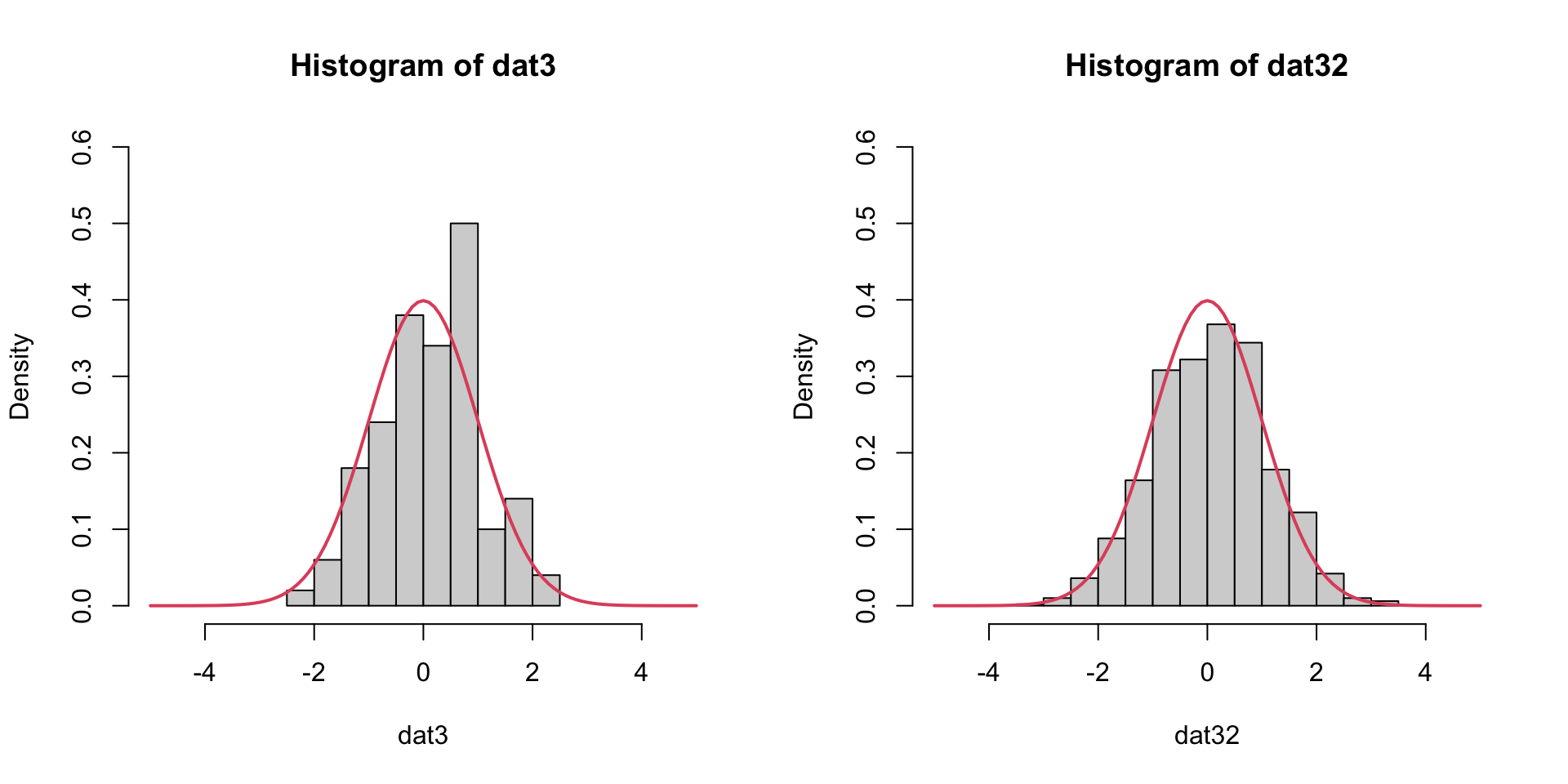 curve(dnorm(x,0,1), col=2, lwd=2, add=TRUE)