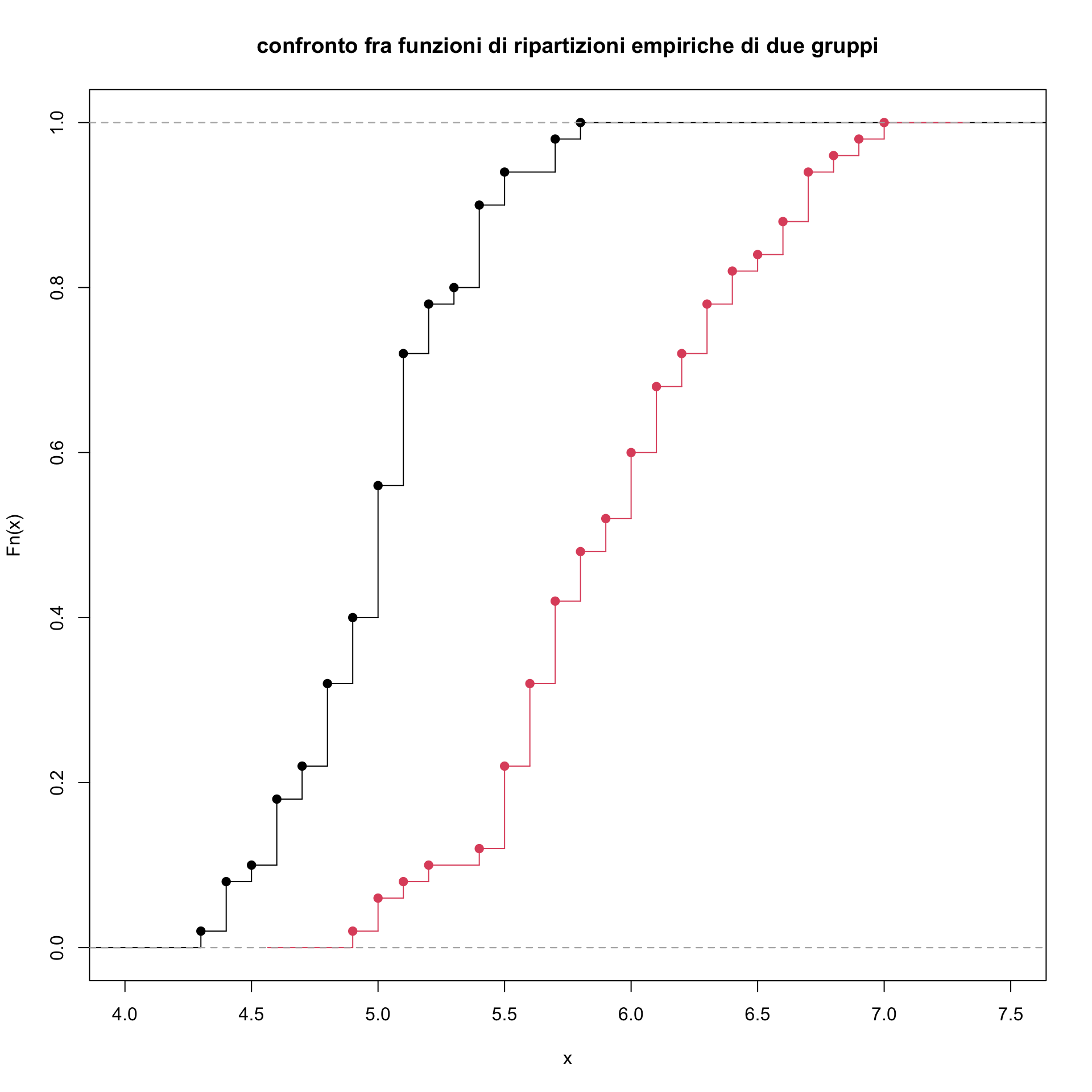 main="confronto fra funzioni di ripartizioni empiriche di due gruppi")