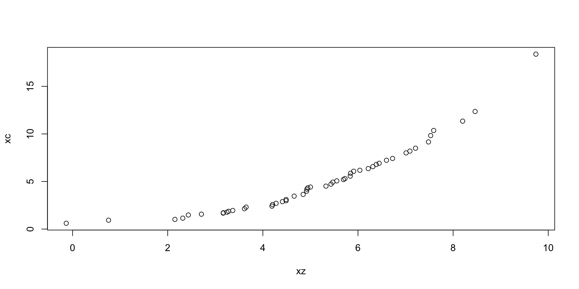 plot(qnorm(qe), dat5s, main="grafico quantile-quantile per confronto con gaussiana")
