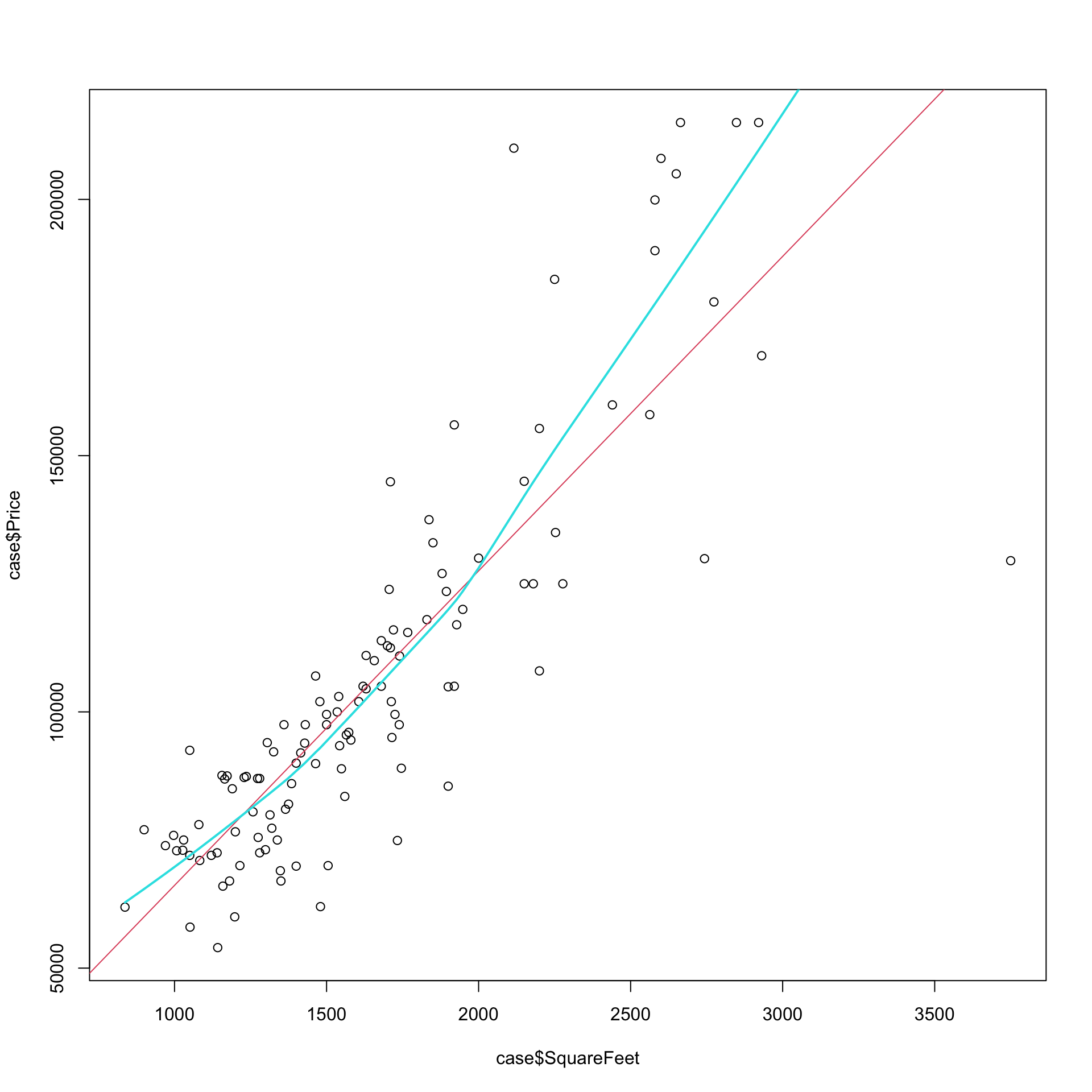 lines(lowess(case$Price~case$SquareFeet, f=.8), col=5, lwd=2)