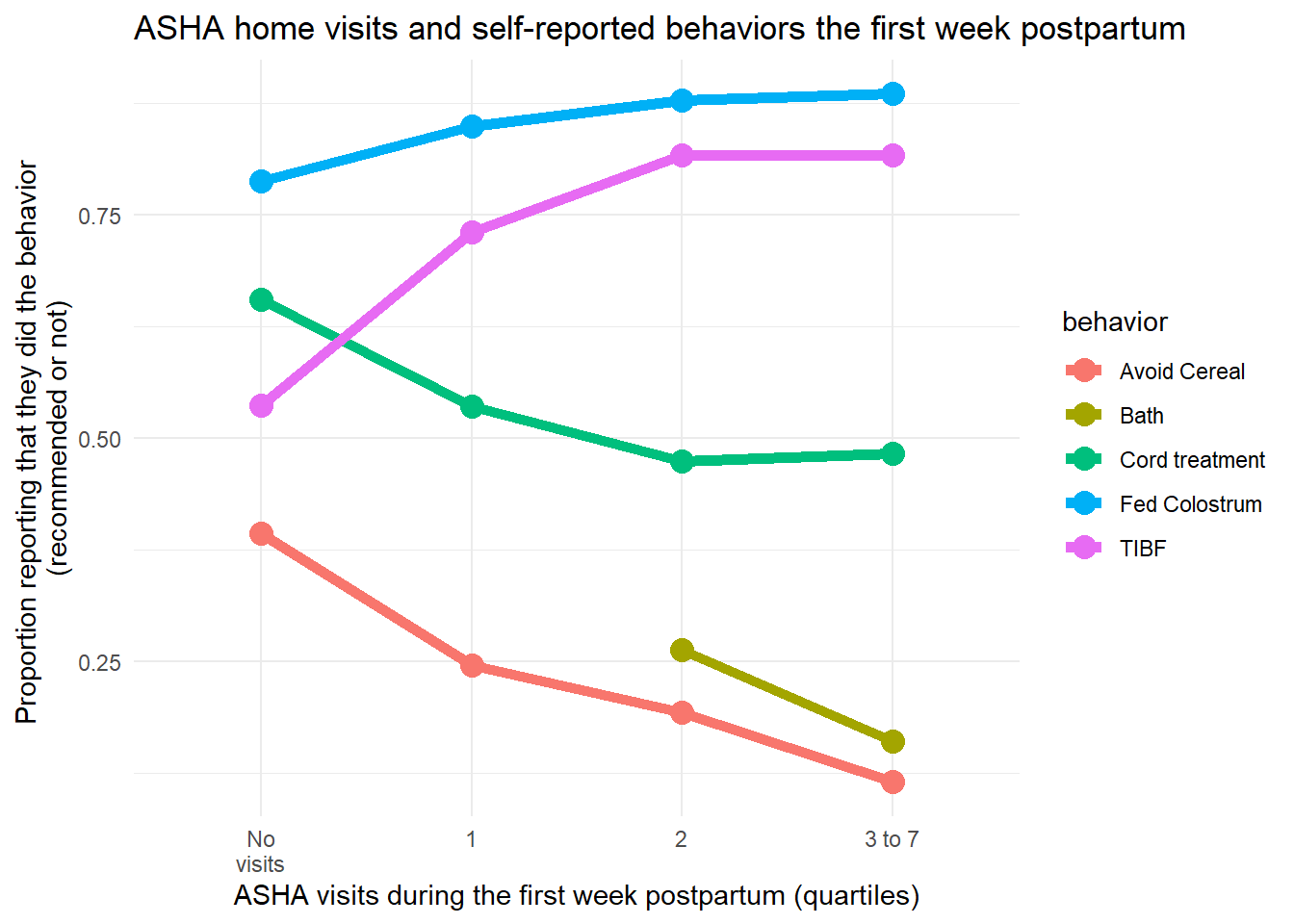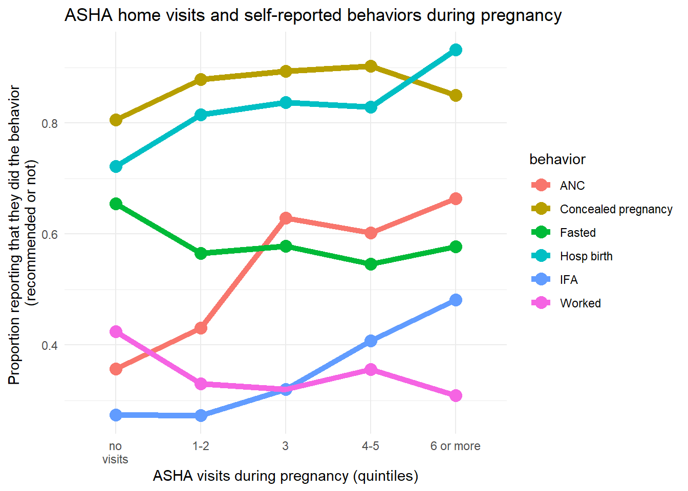 Increased interaction with ASHAs leads to greater uptake of recommended behaviors. Here we are interested in individual-level characteristics that may affect the frequency of these interactions.