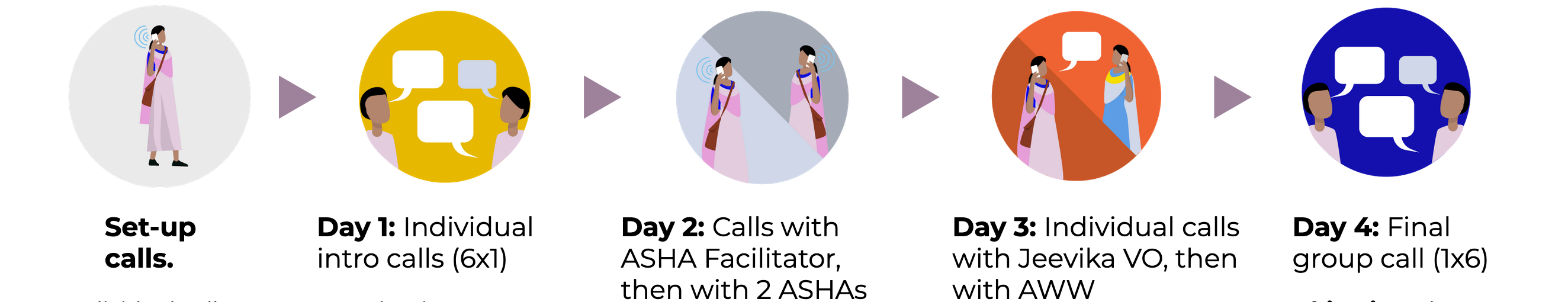 To this end we recruited one group of an ASHA facilitator, 2-3 ASHAs under her, a Jeevika leader, an Anganwadi worker (AWW), and a Panchayat leader (Mukhiya) all of whom worked in the same block. After initial rapport building calls to introduce the project, we held individual calls with each person to understand how they perceive the position of the ASHAs in the community, among the CHW cadre, and what respect they have (or don’t have). This co-design also ended with a group call which shared the outputs from the one-on-one discussions, and a discussion around possible solutions.