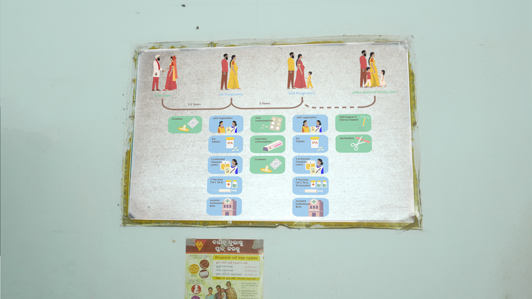 The first part of the tool is the women’s health service timeline that has a visualised timeline of all SRH and MCH services that women can avail at different stages of her reproductive health journey. ASHAs can use it to explain various services in chronology to the couple and the couple can refer to this tool for reference and recollection in the ASHA’s absence.