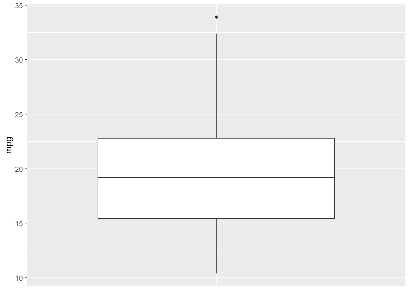 ggplot(mtcars,aes(x=factor(0),mpg))+geom_boxplot()+