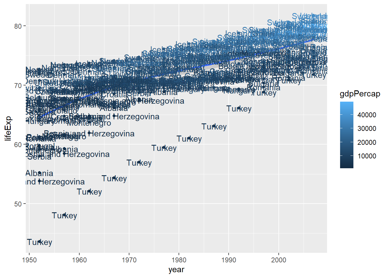 p = ggplot(data = aa, aes(y = lifeExp, x = year )) +